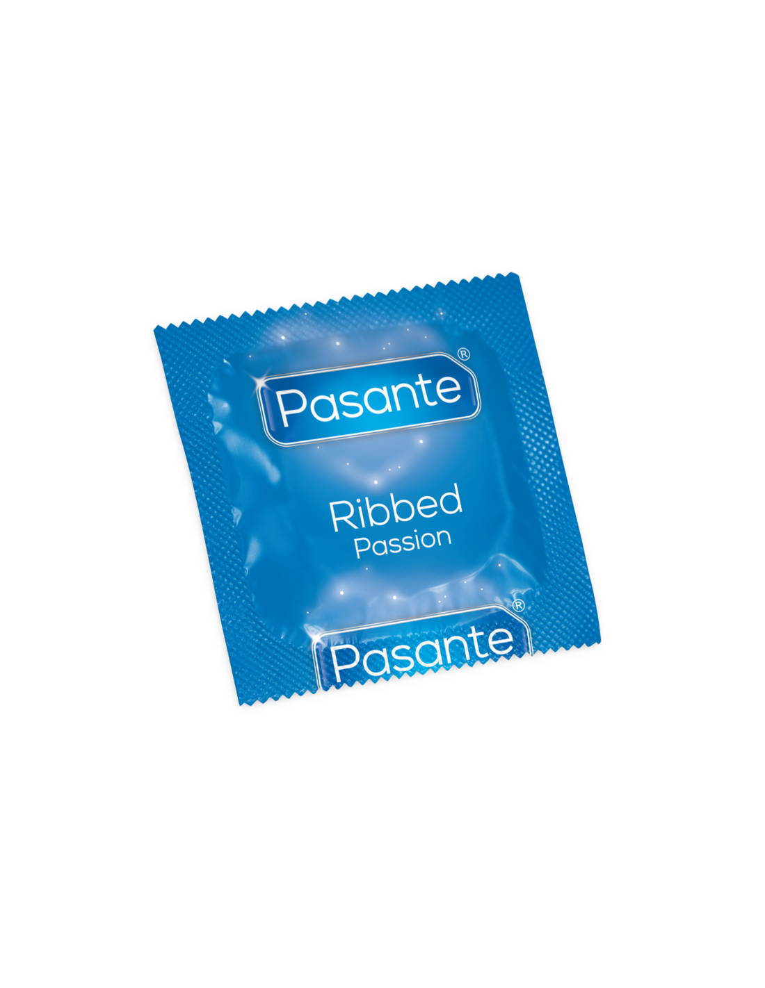 Pasante Ribbed Passion condoms have parallel sides with a defined ribbed texture for intense pleasure. Natural color with points that increase pleasure.