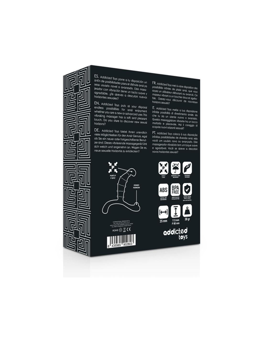 Discover the perfect stimulation between the prostate, anus and perineum with the anal massager from Adicted toys. Adicted's innovative technology is the result of an intense search for sexual pleasure carried out in cooperation with urologists and sexologists.