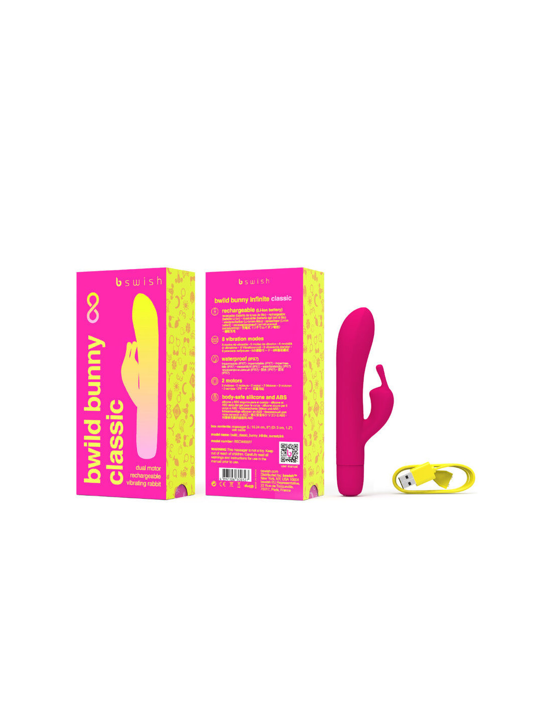 Meet the 'OG' of pleasure, Bwild Bunny Infinite Classic . A guaranteed pleasure with its 2 powerful motors, 4 speed intensities and 4 patterns. Along with its silky-smooth, curvy, 100% body-safe silicone and oh-so-precise tickling, it's waterproof and ready for a splash.