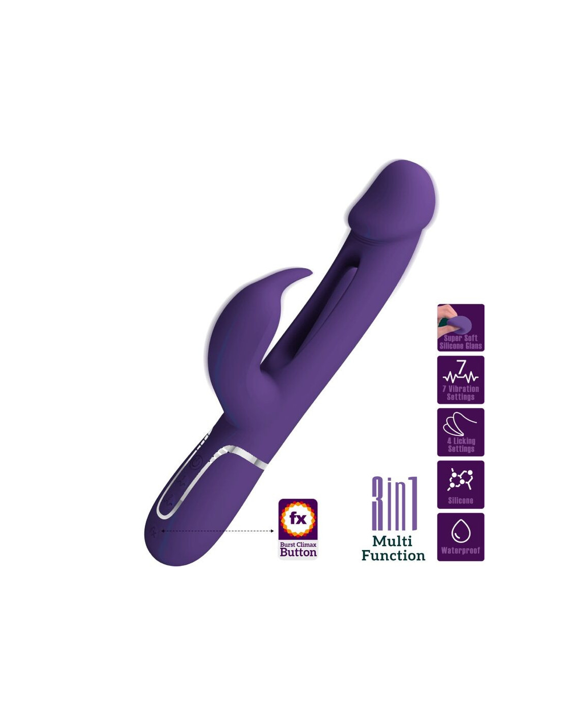 PRETTY LOVE - KAMPAS RABBIT 3 IN 1 MULTIFUNCTION VIBRATOR WITH TONGUE VIOLET