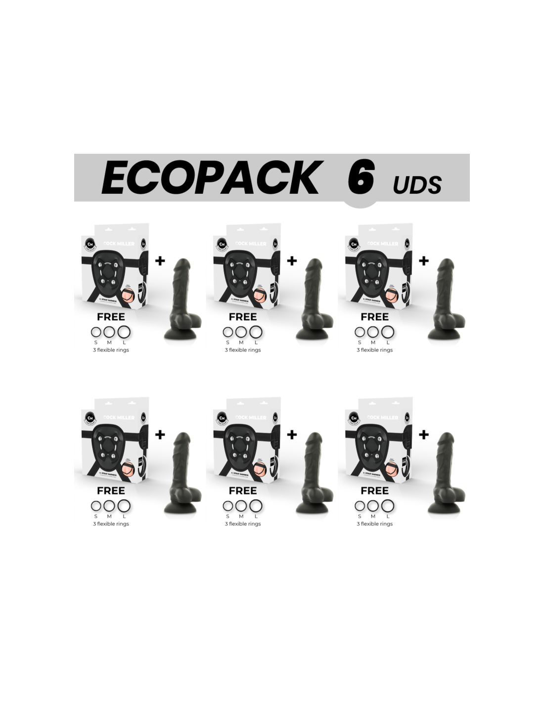 ECOPACK 6 UNITS - COCK MILLER HARNESS DILDO SILICONE DENSITY ARTICULABLE BLACK COCKSIL 13 CM