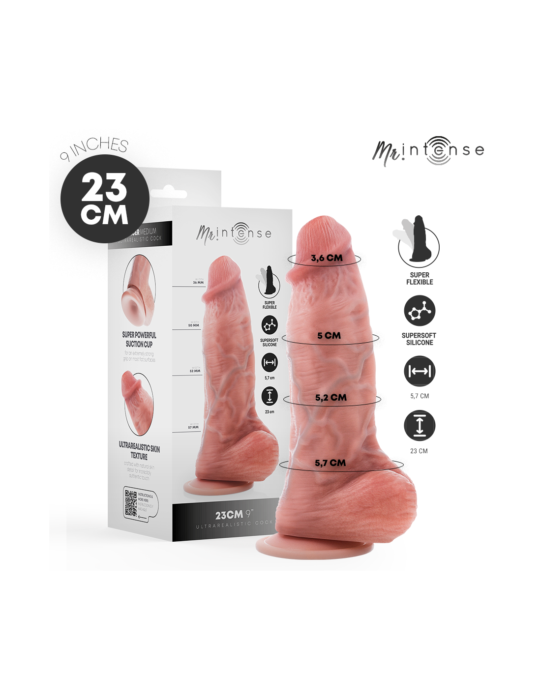 The Spencer Medium Ultra-Realistic Penis with Testicles (23 cm) has been designed for those seeking a realistic, comfortable, and versatile experience, with meticulous attention to detail in both aesthetics and functionality. Its balanced size and ergonomic design make it an ideal choice for enjoying complete control and a natural feel, easily adapting to different uses and preferences.