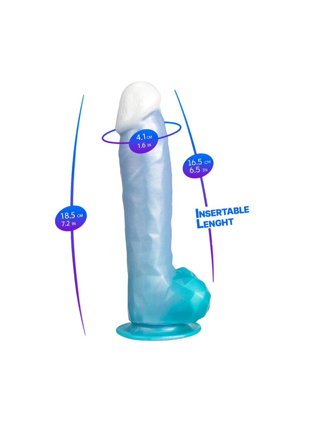 Its bold shape, combining a realistic texture of pronounced veins with a fantasy base — the very essence of the line — is designed to awaken the imagination and provide unexpected sensations. It does not follow conventional patterns: it suggests and invites deep exploration thanks to its generous dimensions. Its celestial blue tone gives it a sophisticated and dreamy presence, and its solid construction with IPX7 certification allows you to use it with confidence in wet environments, clean it effortlessly, and have it ready for the next adventure. Angel is more than an object: it is an invitation to play, experiment, and make every moment something personal, new, and magical.