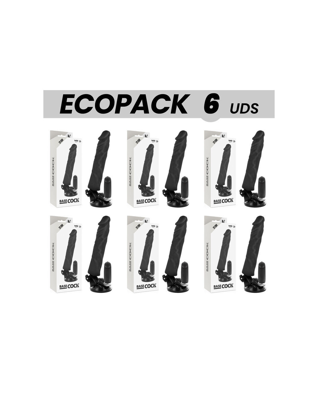 ECOPACK 6 UNITS - BASECOCK REALISTIC VIBRATOR REMOTE CONTROL BLACK 21 CM -O- 4 CM