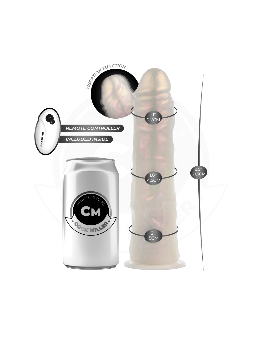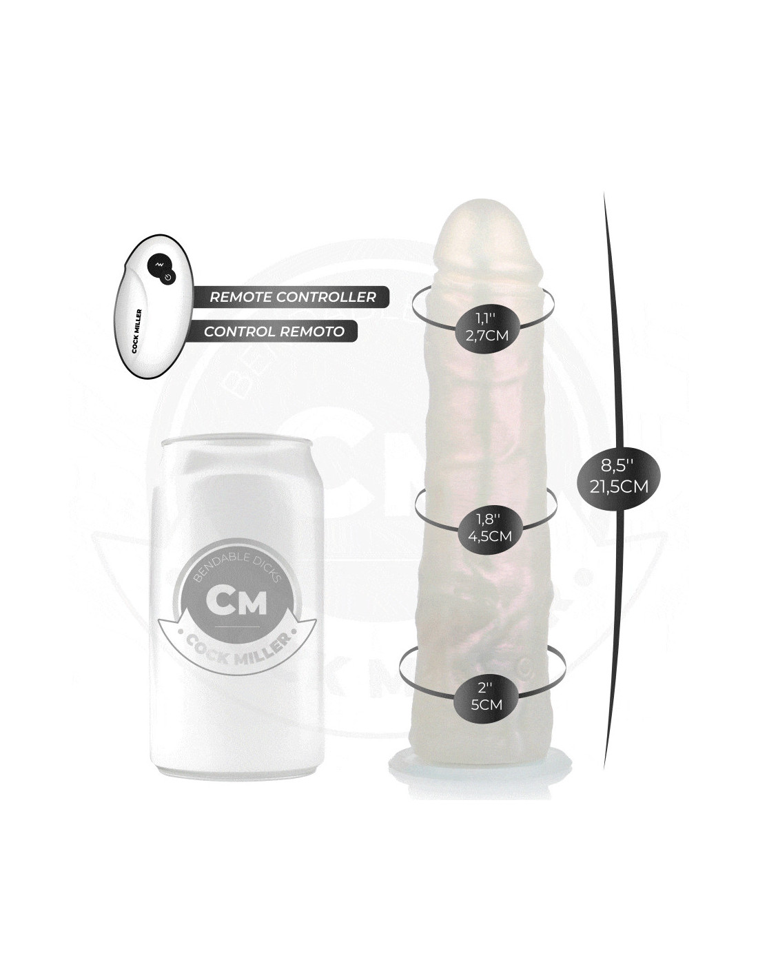 COCK MILLERThe COCK MILLER 21.5 cm is a high-end dildo that offers a unique multi-sensory experience. With internal silicone lighting that runs through the body of the dildo and a powerful multi-speed vibration motor, this model not only stimulates your body, but also your visual senses. In addition, its remote control allows you to easily adjust the vibration intensity and brightness without interrupting the moment. Made of premium medical silicone, this dildo is Designed to offer maximum safety and comfort while providing deep, realistic stimulation.