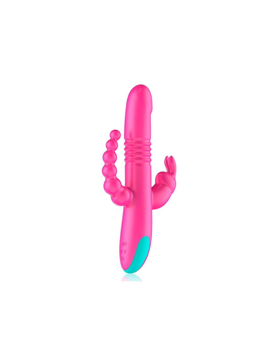 Enjoy triple stimulation: anal, vaginal and clitoral. The perfect toy for strong emotions lovers. The DONALD TRIPLE STIMULATION ANAL, G-SPOT & CLITORAL range is the most complete and unique premium masturbator on the market. It incorporates a set of functions never seen before in a vibrator: G-spot stimulation thanks to its base of soft rotating pearls, penetration through the amazing "up & down" thruster function, anal stimulation by vibrating balls, clitoral stimulation thanks to its incredible "rabbit" and, in addition, it is compatible with the new Watchme remote control technology.