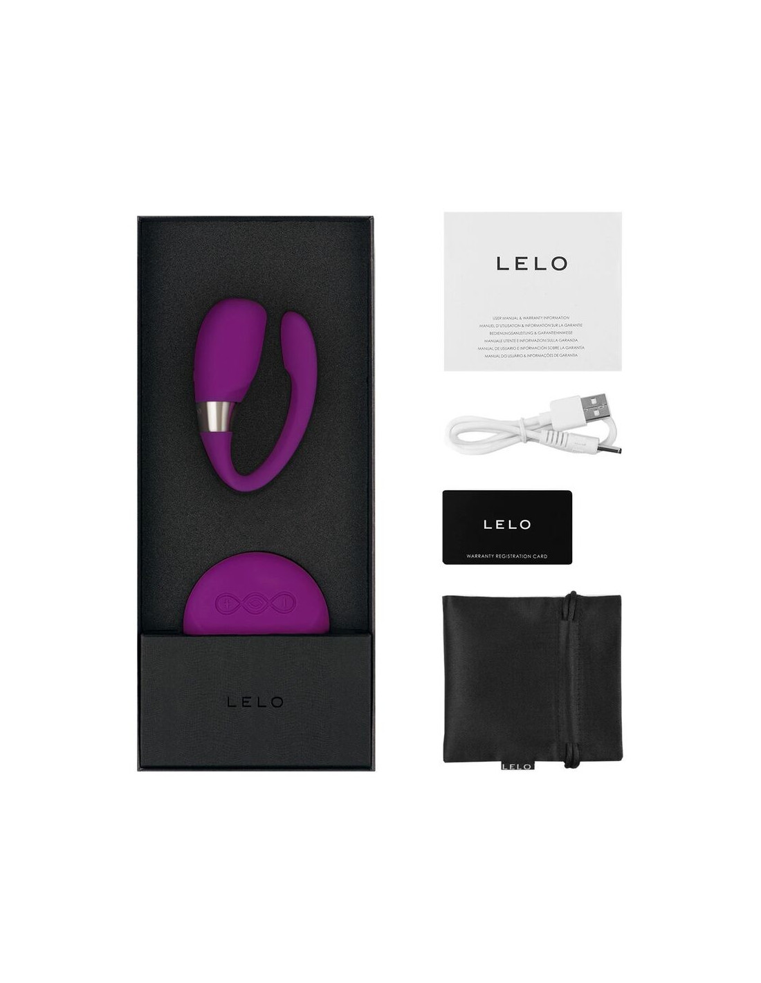Tiani 3 comes in the award-winning LELO box with its country-specific charger, a satin storage bag, free single-dose lubricant and a full 1-year warranty.