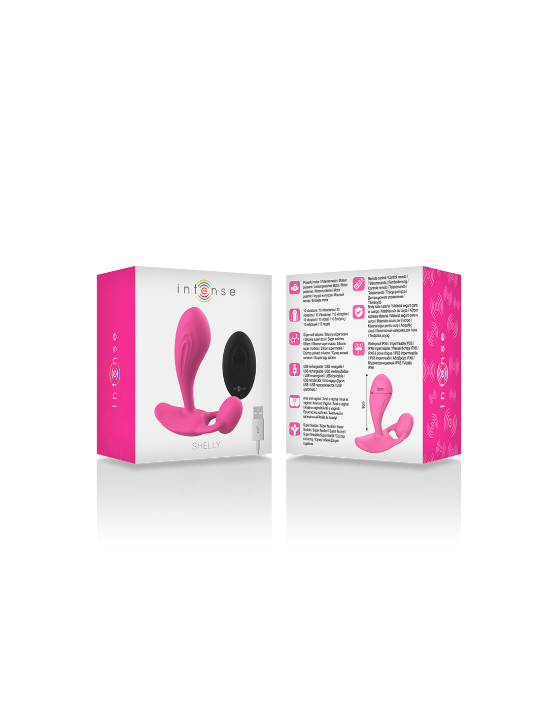 • Intense™ Shelly™ recommends the use of water-based lubricants such as Waterfeel™, Aqua™, Bioaqua™, Aquatravel™ or Coquette™ for easy and smooth insertion of all silicone products. Do not use silicone lubricants, oils or creams with any silicone product as they may degrade the product material and limit its performance and life.