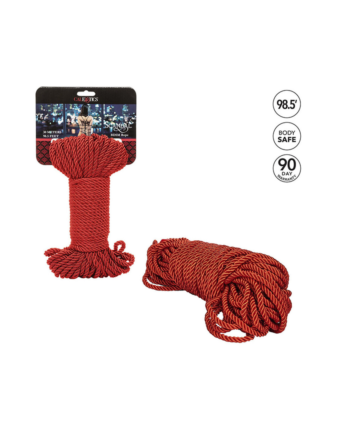 Give into your BDSM fantasies and get creative with 98 feet of Scandal® BDSM Rope. Our award-winning Scandal® Collection has created the silky smooth Shibari-friendly rope of your wildest fantasies to let you dive deep into endlessly creative bondage play. Give yourself over to elevated pleasure and enhanced pleasure with every wrap and knot of this silky, slender rope. Wrap tight around wrists, gently bind ankles or create one-of-a-kind shibari binding on your lover for a uniquely sensational experience. The silky rope is ideal for partners looking to experience with knot and restraint. Take fantasies to the next level and scandalous with the endlessly creative BDSM Rope.