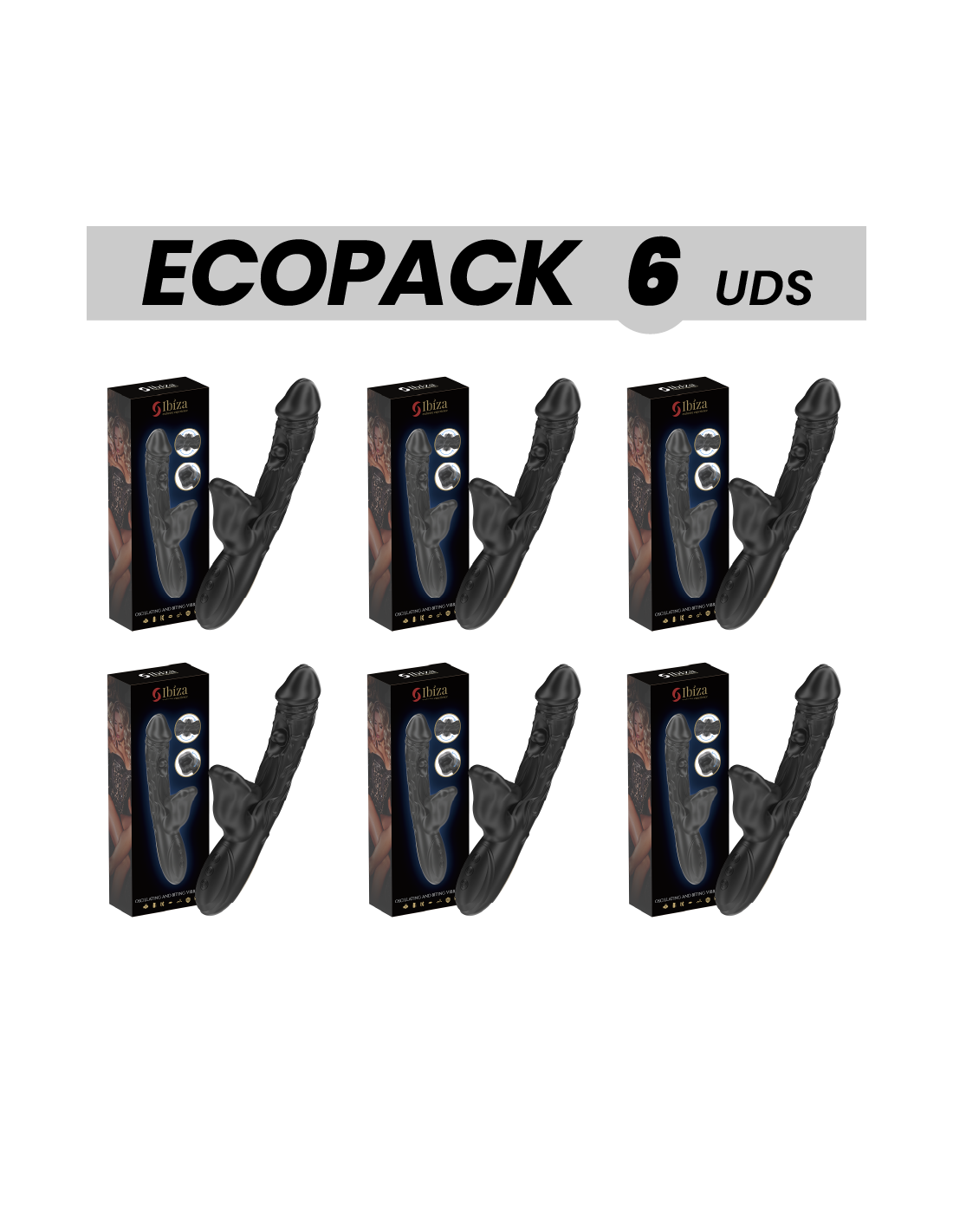 ECOPACKS 6 UNITS - IBIZA VIBRATOR AND CLITORIS STIMULATOR WITH BITING AND ROTATION EFFECT