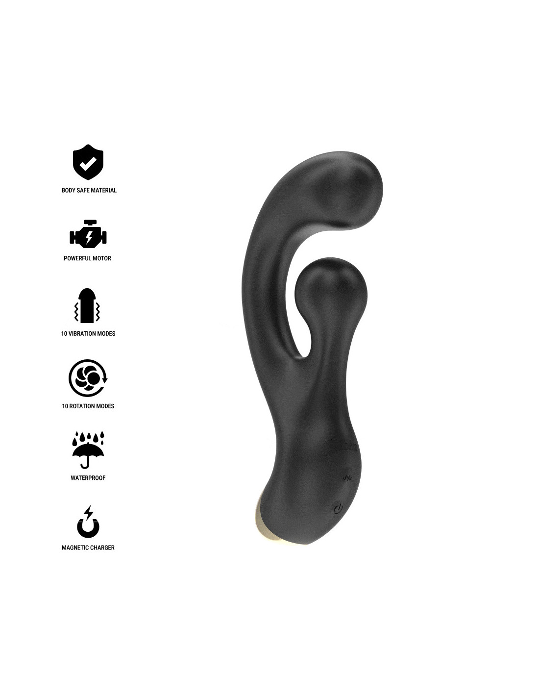 Gracias a sus dos motores potentes e independientes, este estimulador ofrece hasta 10 modos de vibración y 10 modos de rotación, que pueden utilizarse de forma individual o combinada para una experiencia absolutamente personalizada. La rotación activa el punto G con movimientos circulares envolventes, mientras que la vibración estimula el cuerpo con ritmos intensos o delicados según lo desees.