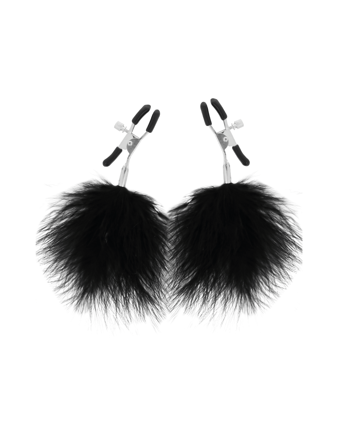 Fully adjustable nipple clamps for him or her. It has soft soft pads for greater comfort and can be removed. They come decorated with two elegant pompoms.