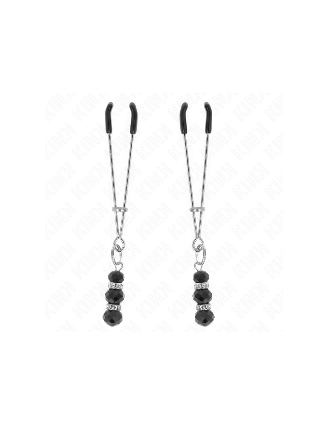 KINK - GOLD THIN NIPPLE CLAMPS WITH 3 BLACK GLASS BEADS 7 CM