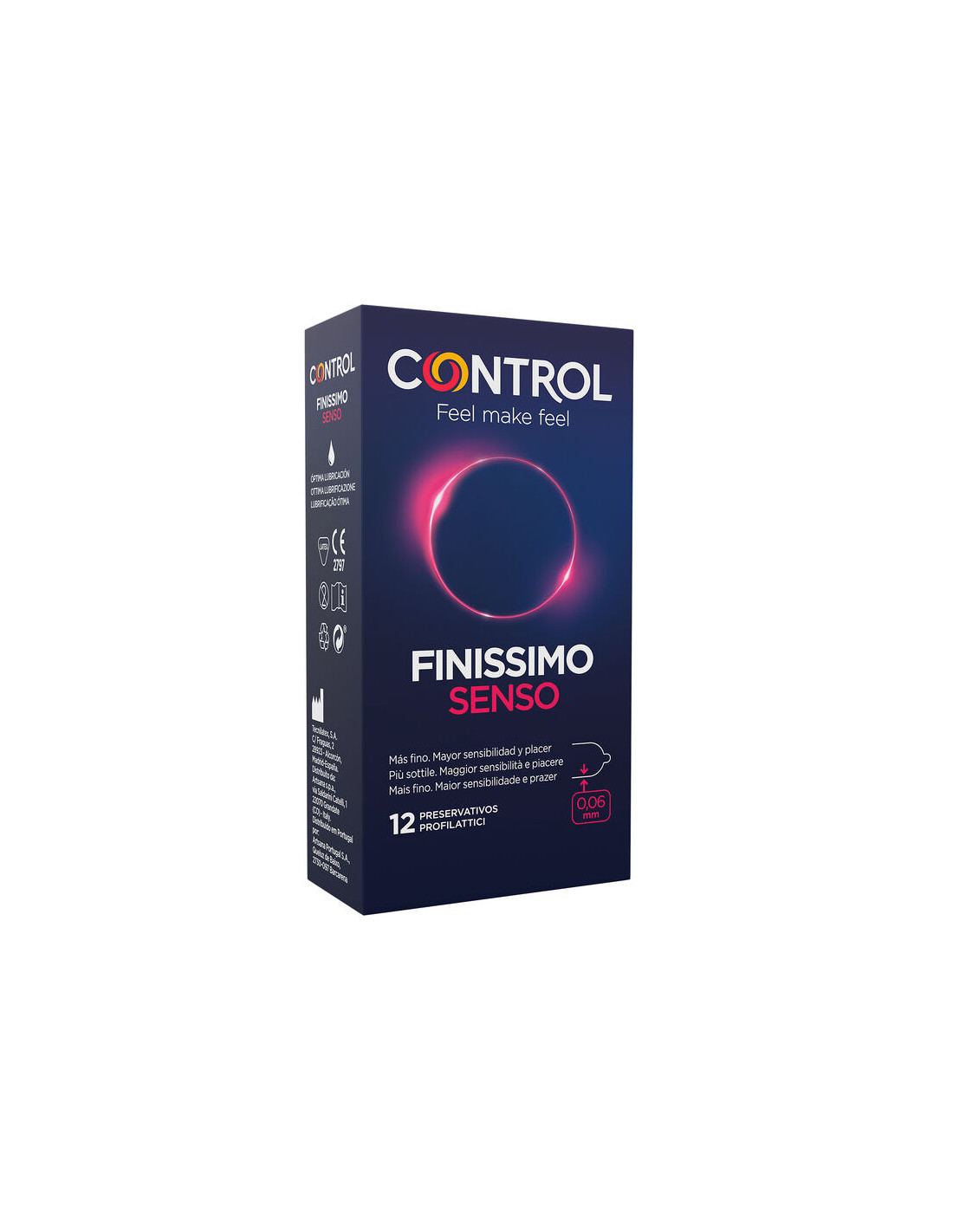 Control Adapta Senso is a condom in natural rubber latex of the highest quality, thin, smooth, anatomical, with non-parallel sides, transparent, lubricated and with a deposit