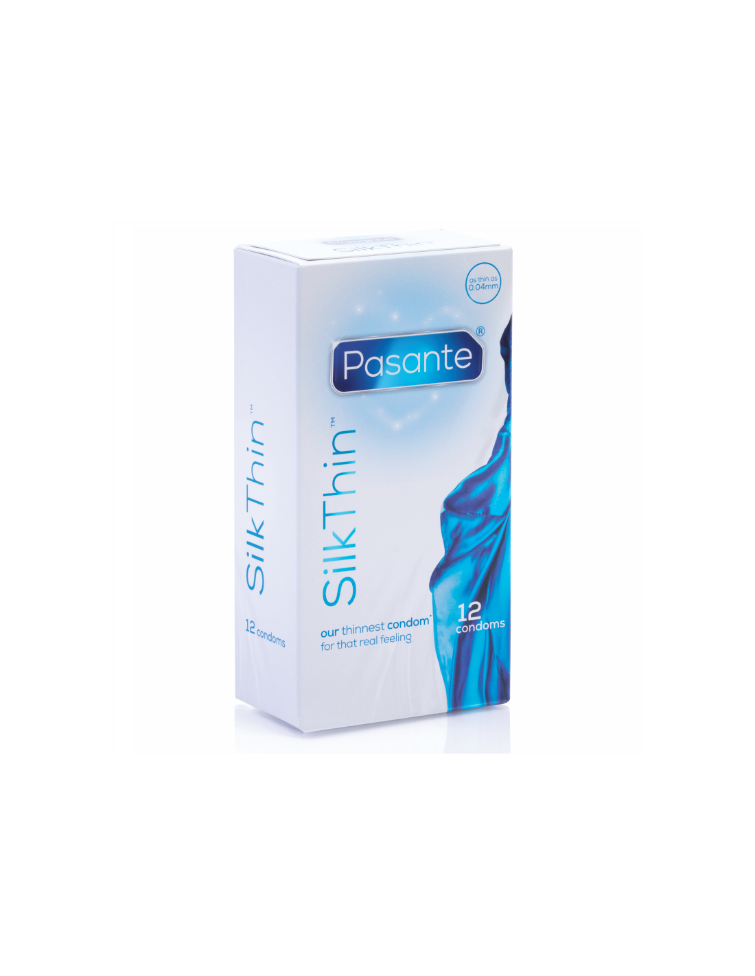 Silk Thin ? is Pasante's thinnest latex condom and is up to half the thickness of a regular Pasante * condom. At just 40 - 45 microns thick, Silk Thin ? offers both partners the closest sexual experience for that real feeling. Smooth, parallel, natural-colored condoms. Silk Thin is 190mm long and 53mm wide.