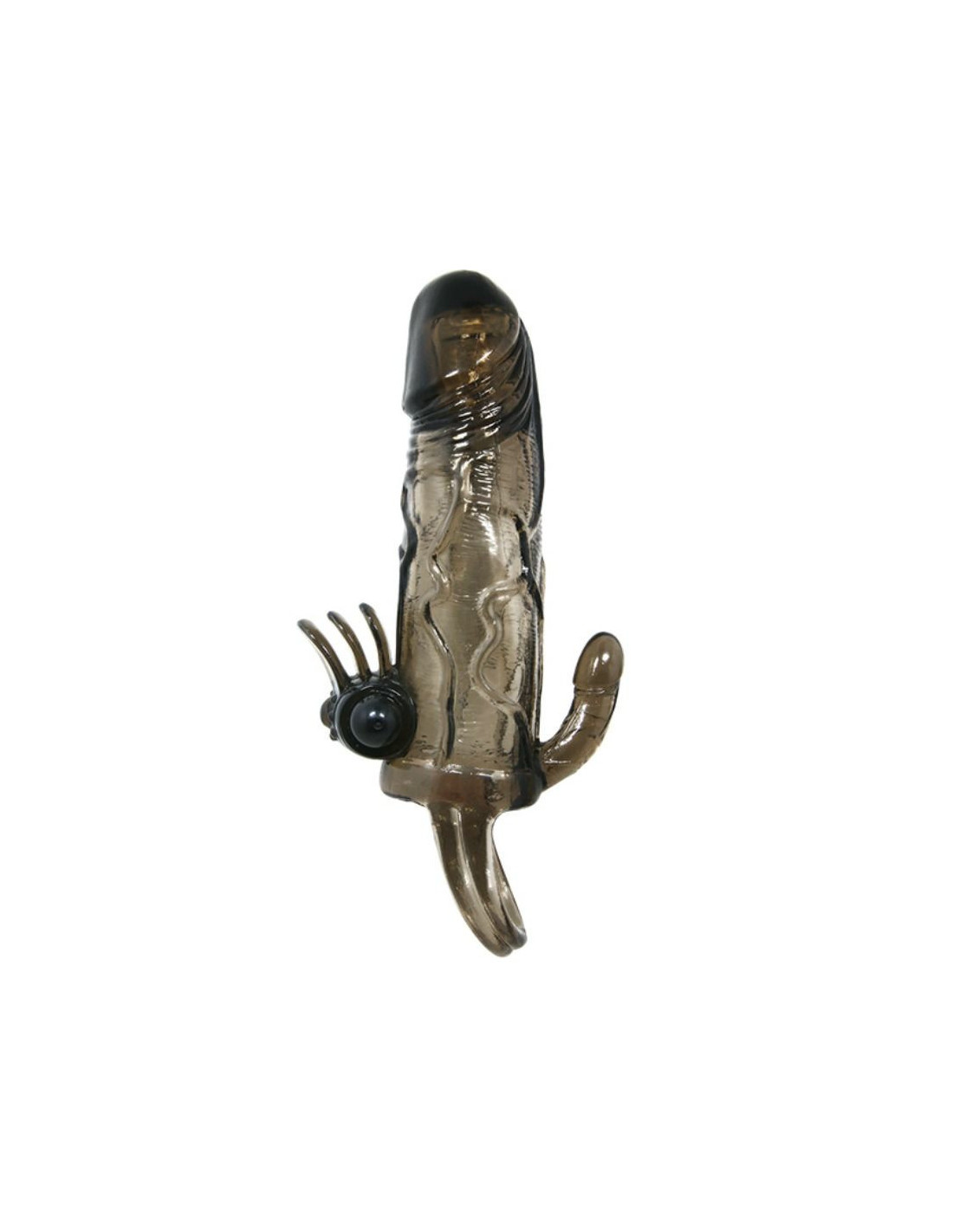 BAILE - BRAVE MAN PENIS COVER WITH CLIT AND ANAL STIMULATION DOUBLE BULLET BLACK 16.5 CM