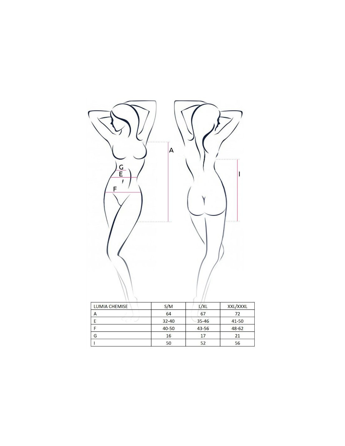 The chemise from the Lumia collection is a fabulous piece of lingerie with a spectacularly sexy design with which you will become a bomb of seduction, manufactured by the prestigious sexy lingerie brand Passion