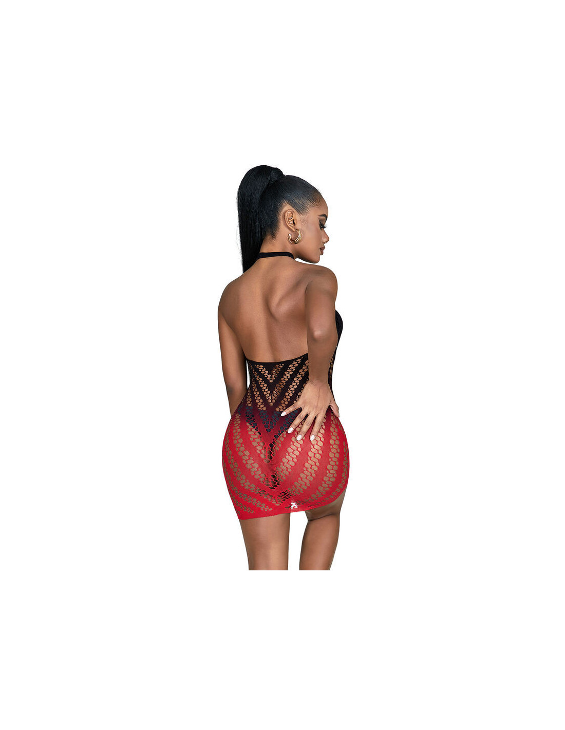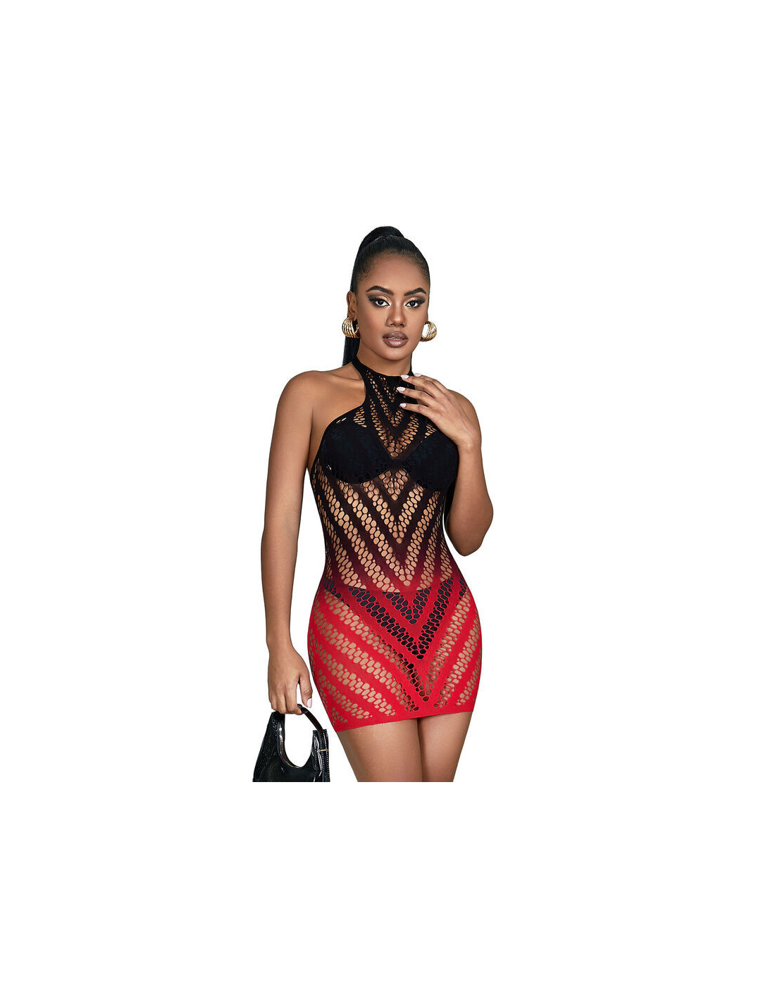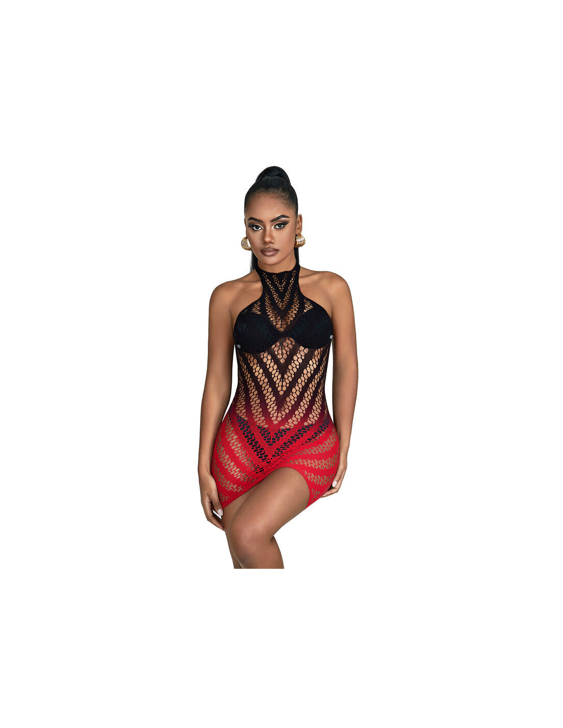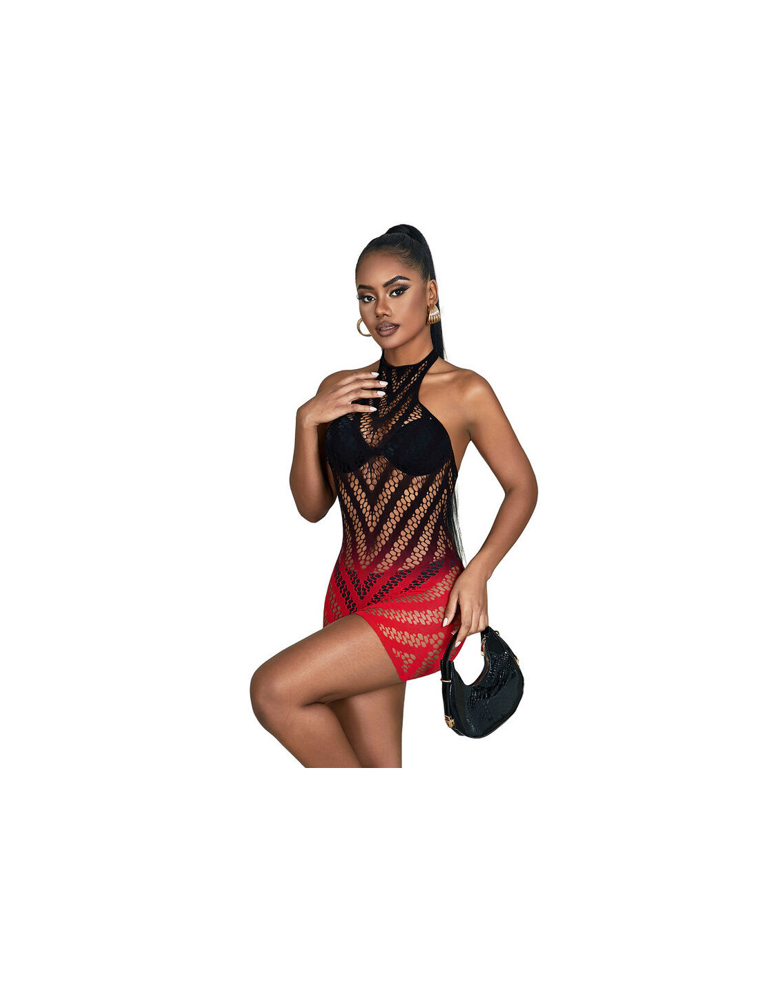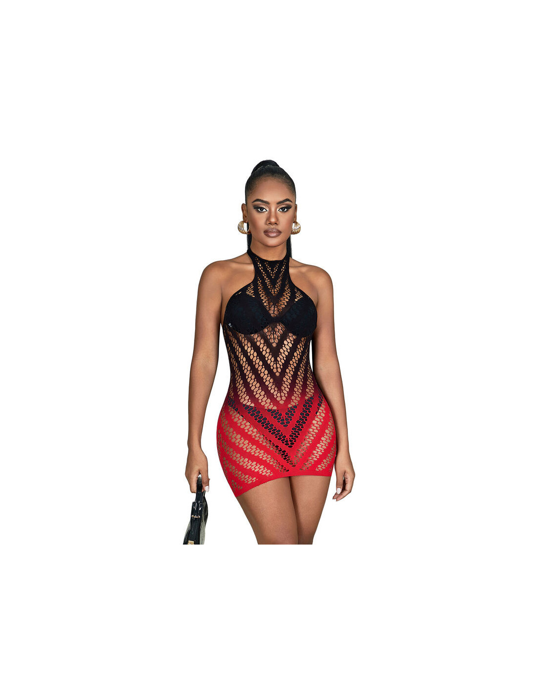 SUBBLIME - 952242 RED AND BLACK DEGRADED ELASTIC FISHNET DRESS ONE SIZE