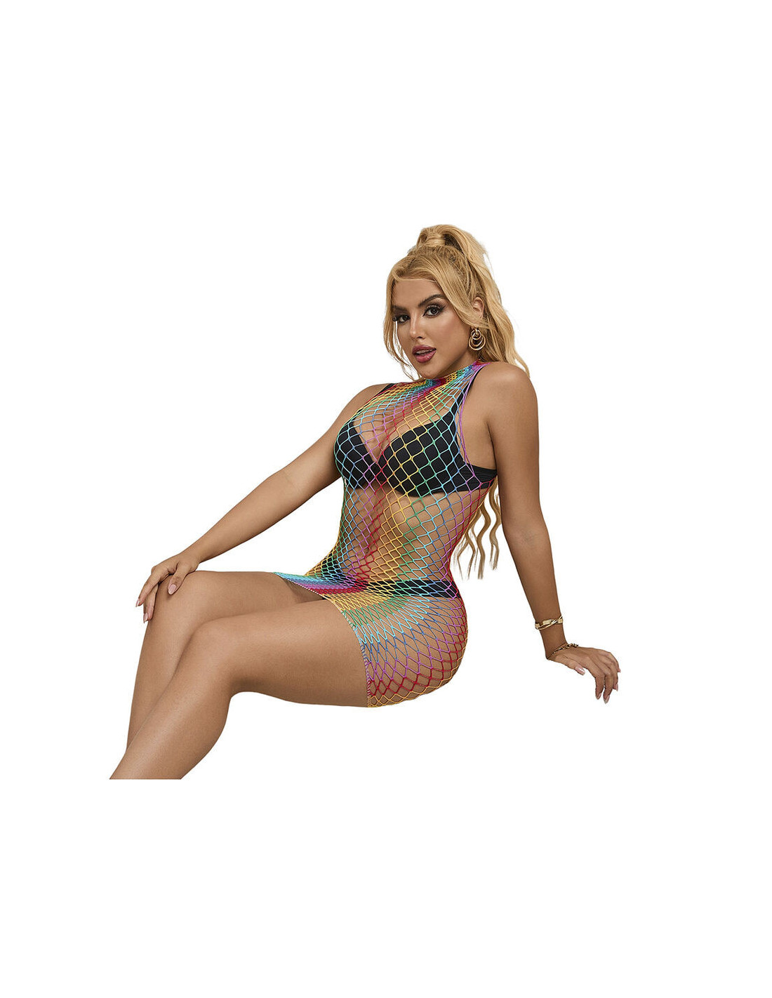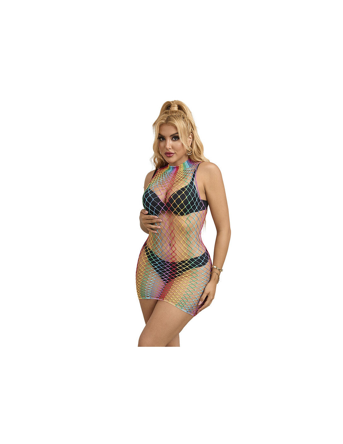 SUBBLIME - 952433 RAINBOW HIGH NECK SLEEVELESS FISHNET DRESS ONE SIZE