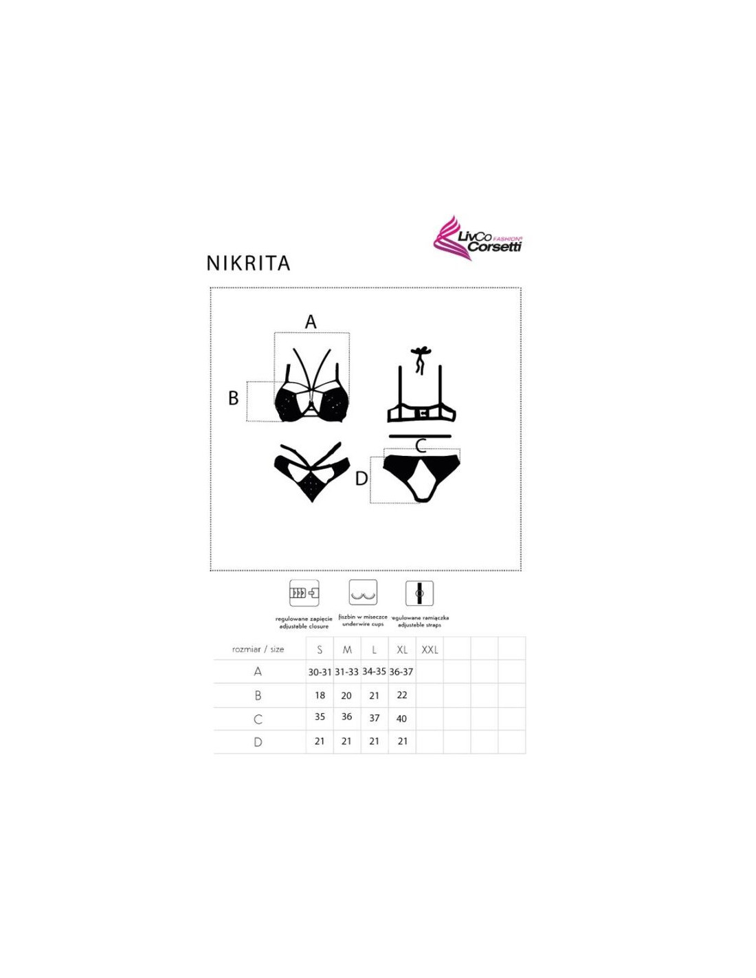 The product is available in various sizes from S to XL. Both the bra and the panties have adjustable straps and back for a perfect fit. The Nikrita lingerie set is a proposal for women who value classics, but also like daring styles!