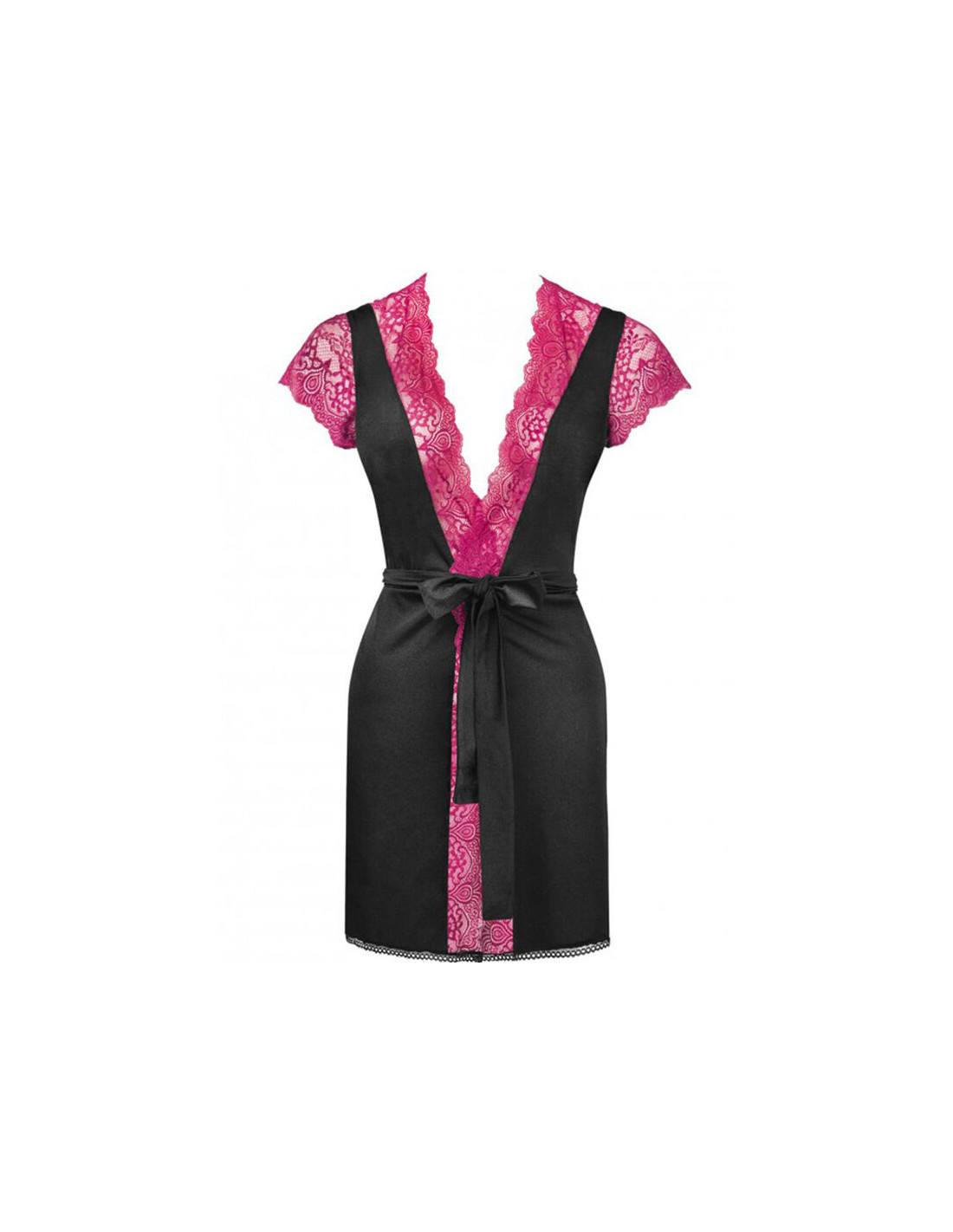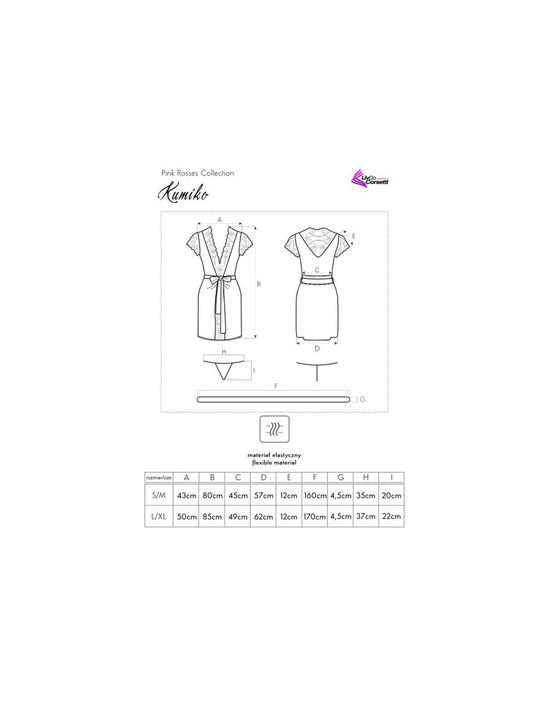 LIVCO CORSETTI SETSIf you haven't convinced yourself to wear negligees yet, it's high time. This one from the Kumiko collection will be a hit and you will certainly fall in love with this bathrobe. All this is possible thanks to the unique combination of tasteful lace and delicate microfiber. Additionally, the set includes briefs. The presented dressing gown is beautiful, and the black and burgundy color perfectly matches the lace trim on the edges. An additional advantage is the effect of an accentuated waist thanks to the satin tie at the waist. The product is made of a delicate, pleasant material. 90% polyamide, 10% elastane.