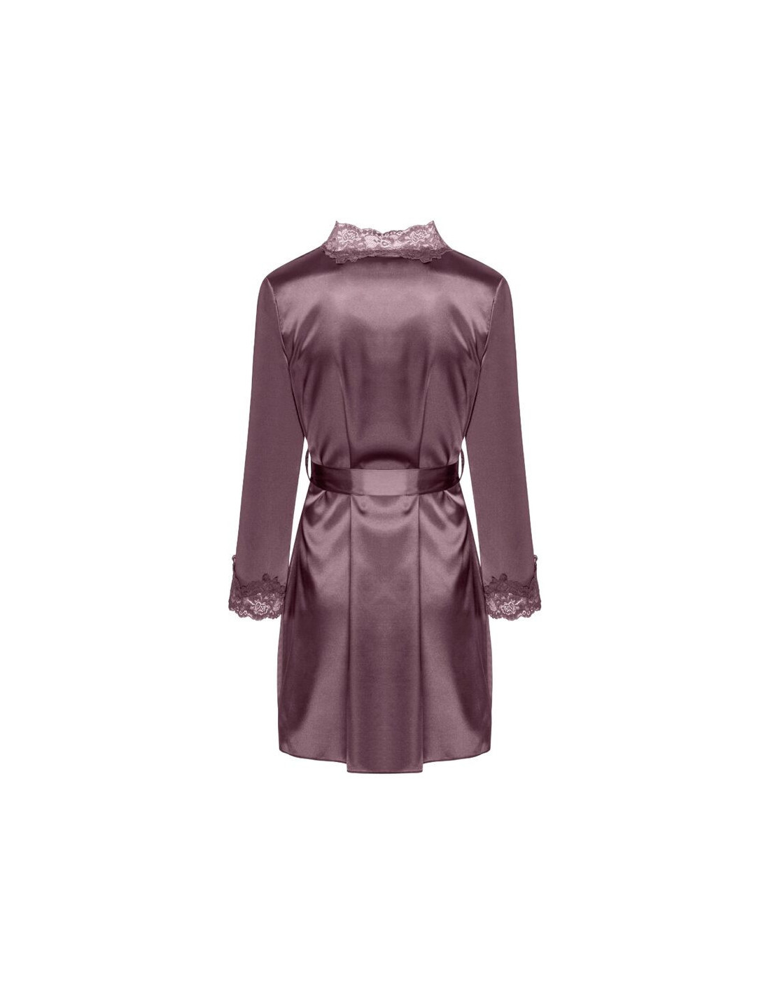 LIVCO CORSETTI SETSAn exceptionally beautiful set of underwear made of shiny purple satin, a bathrobe with a chemise, reaching to mid-thigh. The front and long sleeves of the dressing gown tied at the waist with a belt are decorated with beautiful lace. T-shirt with thin, adjustable straps, decorated with the same lace at the bust. Thong included.