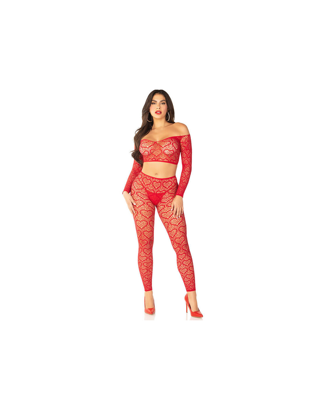 LEG AVENUE BODYSTOCKINGSStand out in vibrant, bold style with our Red Crop Top and Tights Set.