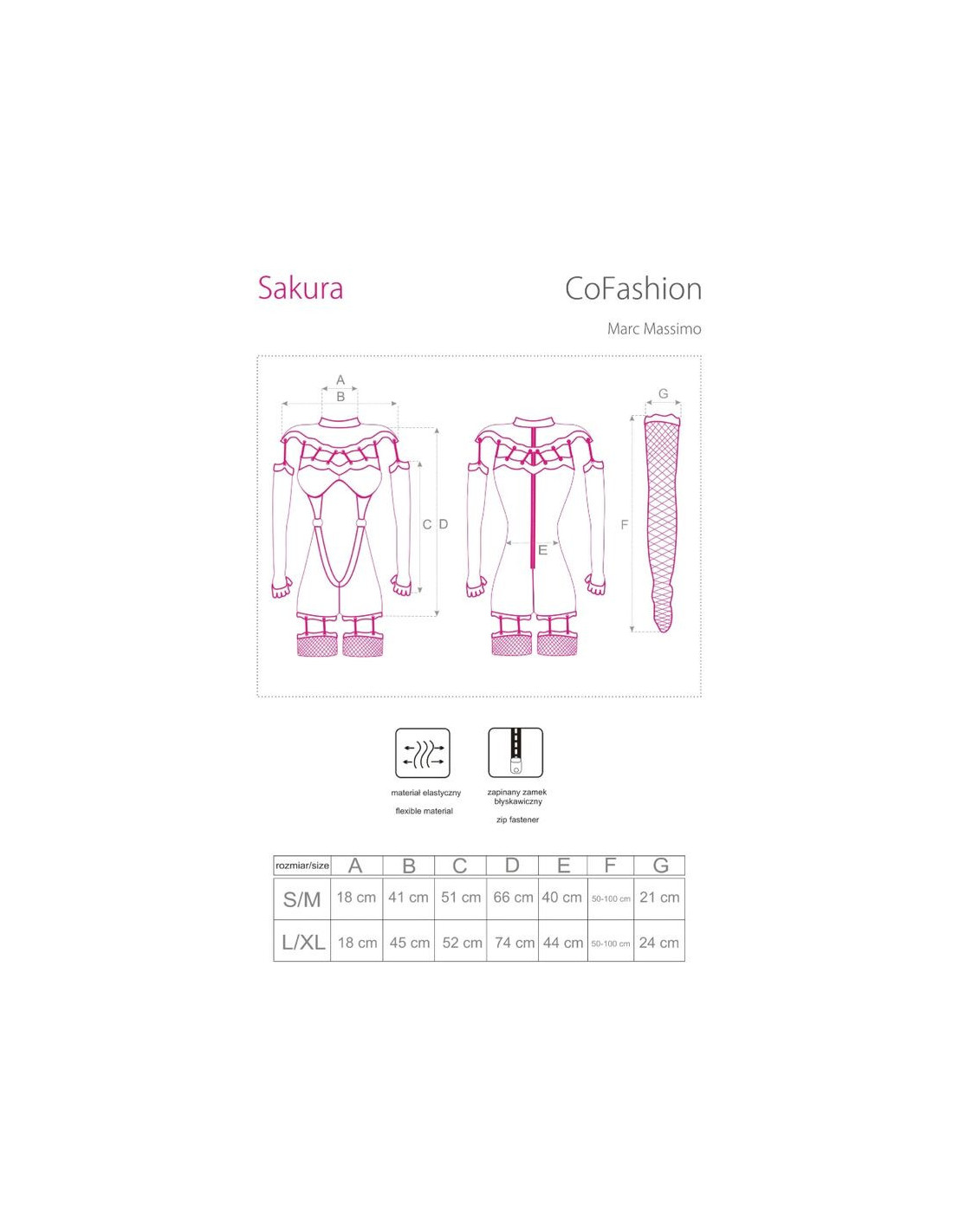 LIVCO CORSETTI FASHION - SAKURA CF 90357 JUMPSUIT LONG GLOVES GARTER BELT BLACK L-XL