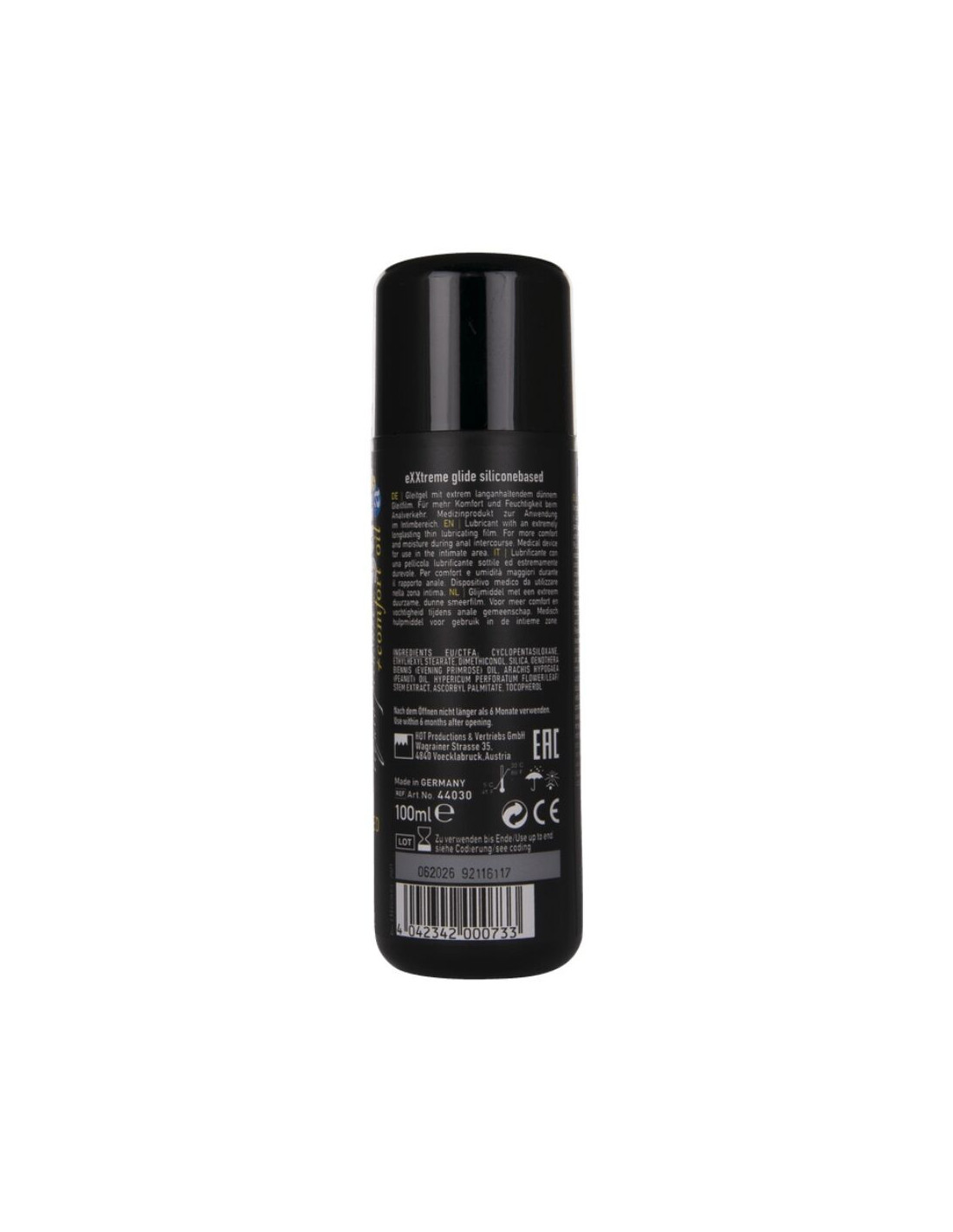 The unique formula contains soothing extracts of St. John's Wort and evening primrose oil, which help relax the muscles and facilitate gentle penetration. The combination of premium cosmetic silicone oils provides an exceptionally high level of glide, with a long-lasting lubricating film that leaves a smooth, silky feel on the skin.