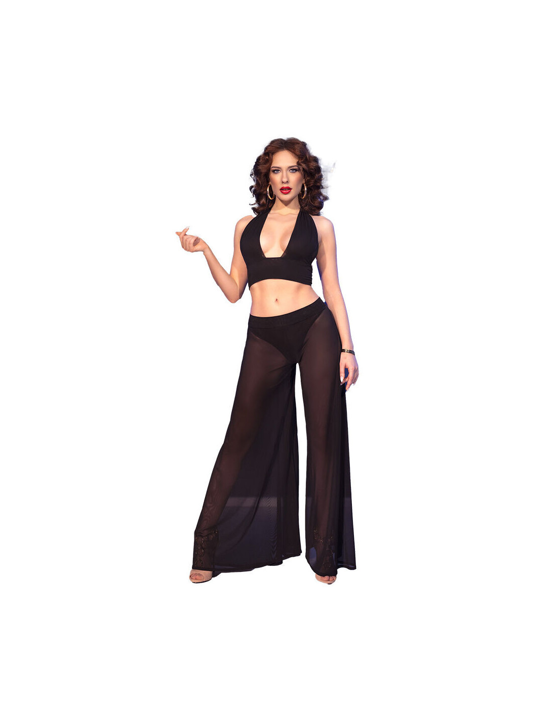 Wide-leg pants add a touch of elegance while draping sensually over the body.