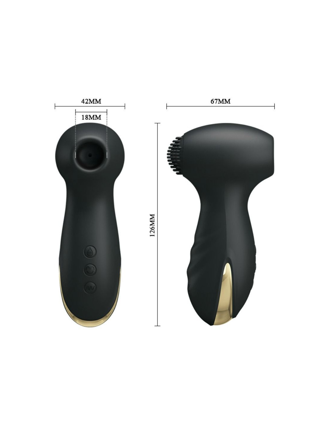 7 suction modes and 7 intense vibration modes provide customers with a variety of sensual experiences. The portable charger and low-noise design allow you to use it anywhere. The Pretty-Love-Hammer's IPX7 waterproof design makes it easy to clean.