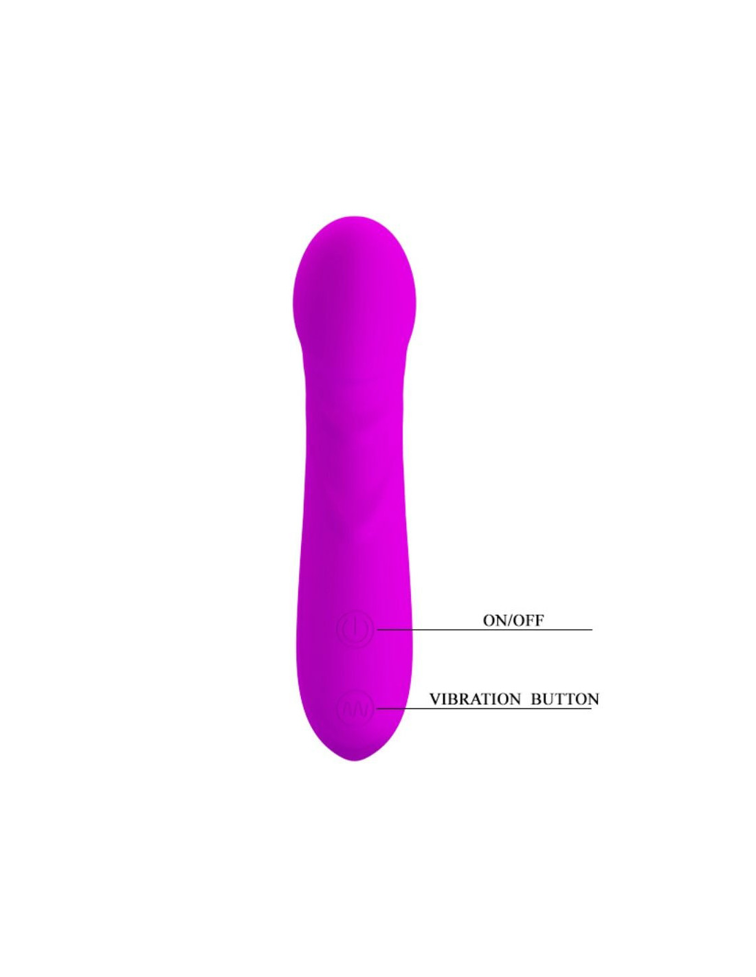 Enjoy this silicone G-spot massager vibrator. This fabulous toy is long, thin, slightly curved and finished with a petal-shaped tip for incredible G-spot stimulation. The powerful motor-vibrator has 30 separate functions, including vibration speeds. and pulsation patterns for dynamic stimulation. The battery is rechargeable for your convenience and includes a charger.