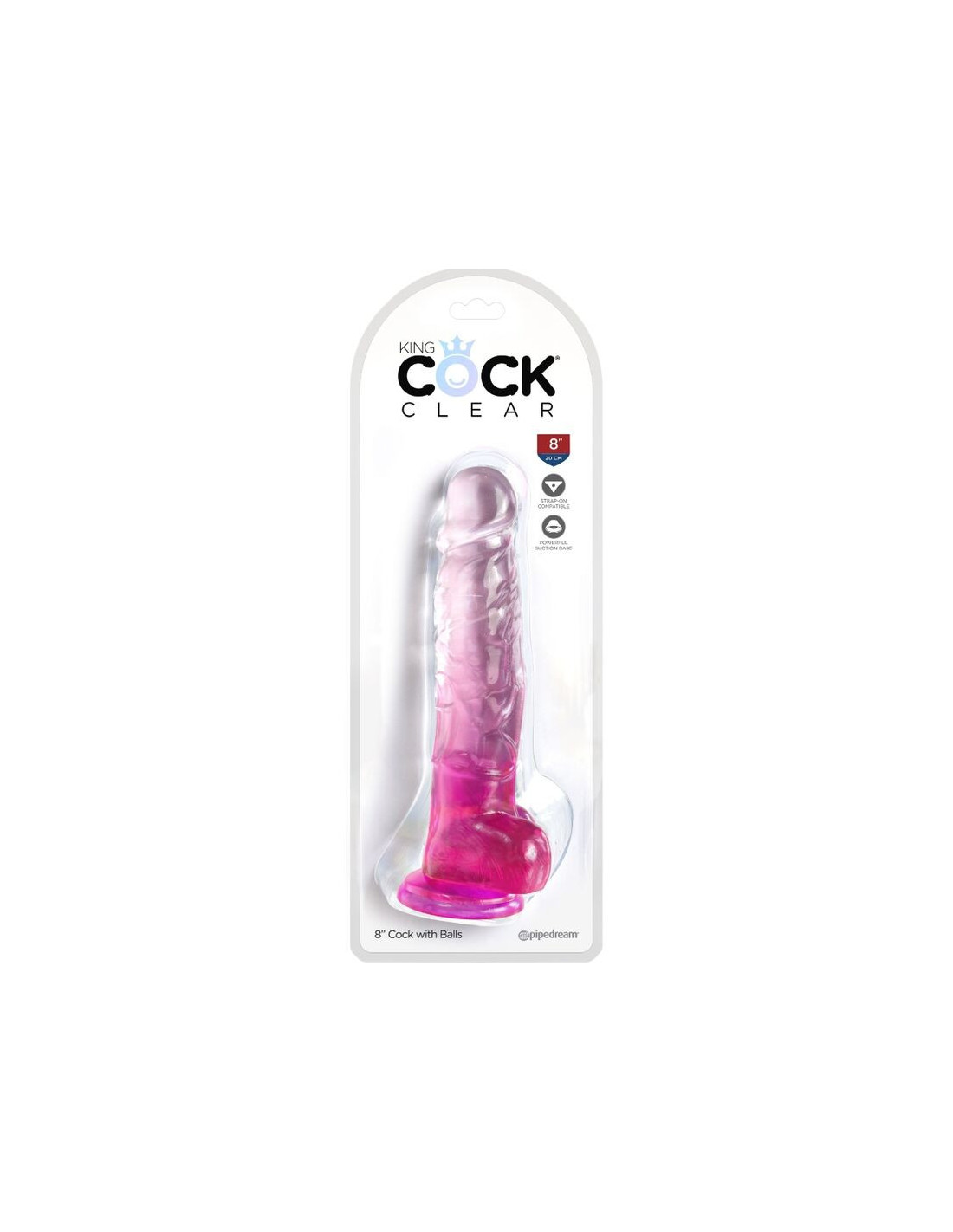 With its flexible shaft, detailed veins, and defined head, King Cock Clear will engage your senses visually and physically. The powerful suction cup base sticks to nearly any flat surface and makes every dildo harness compatible. See the Innovation, an incredibly pure and translucent, material feel the realism