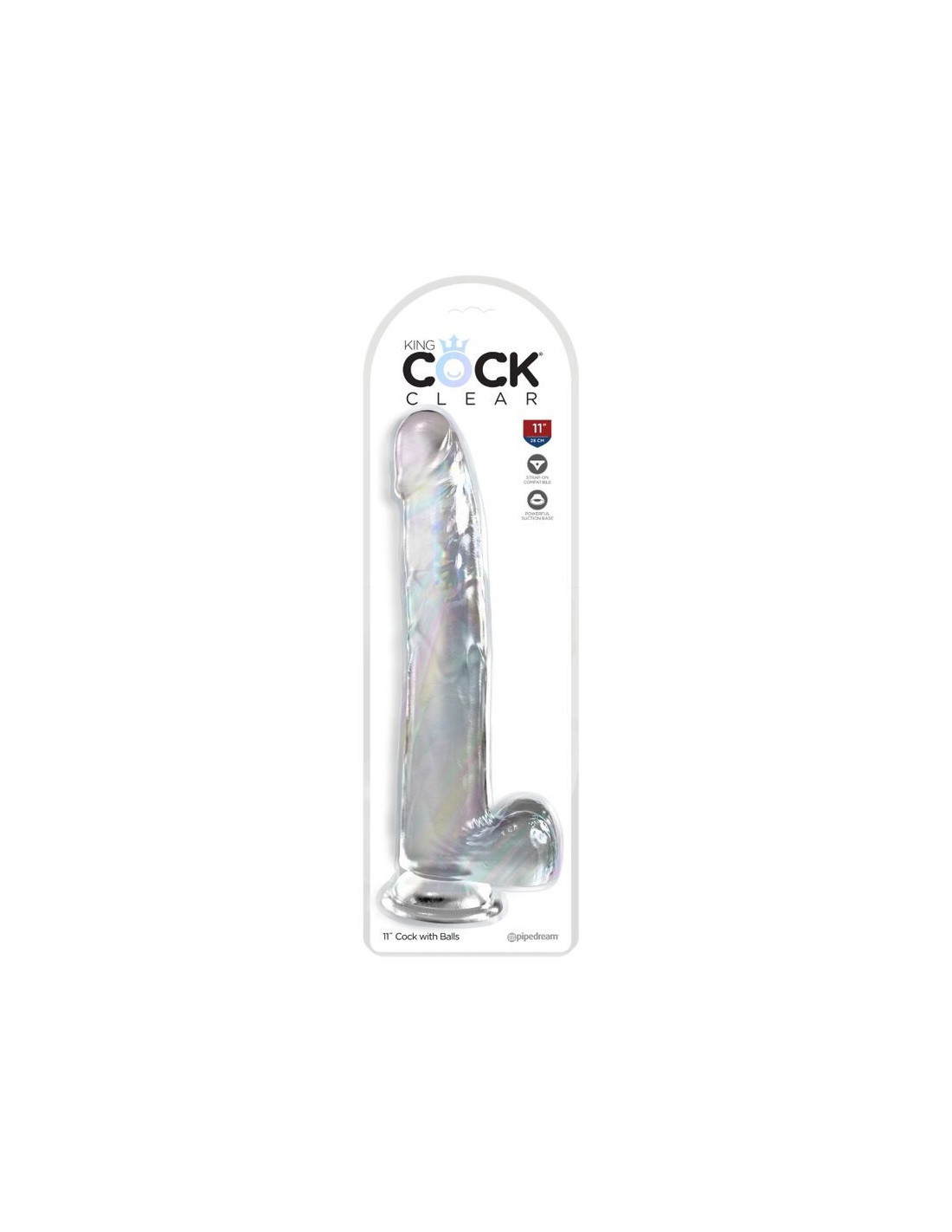 King Cock Clear combines a translucent dildo with a realistic penis design. The luminous clarity and realistic shape will fulfill all your fantasies! With its flexible shaft, detailed veins and defined head, King Cock Clear will attract. your senses visually and physically. Powerful suction cup base sticks to almost any flat surface and makes all dildo harnesses compatible