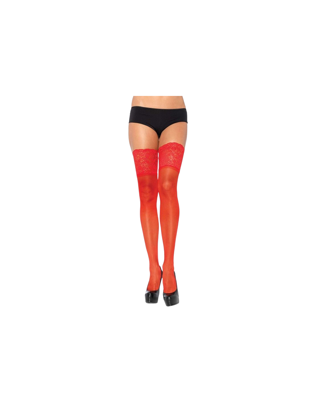 Lycra sheer thigh highs with 5 inch silicone lace top manufactured by the prestigious lingerie brand, Leg Avenue. Increase your feminity getting an exclusive piece of seduction sensuality and elegance.