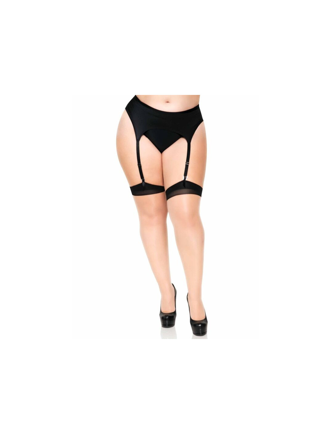 LEG AVENUE - PLUS LYCRA SHEER 2 TONE THIGH HIGH WITH BACKSEAM AND CUBAN HEEL
