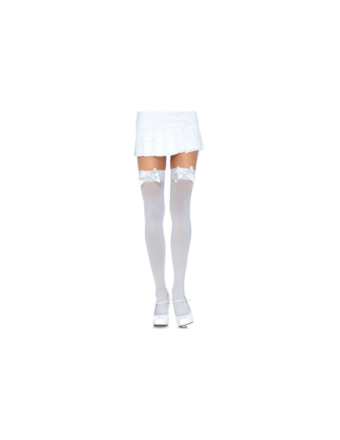 LEG AVENUE - NYLON THIGH HIGHS WITH BOW WHITE / WHITE