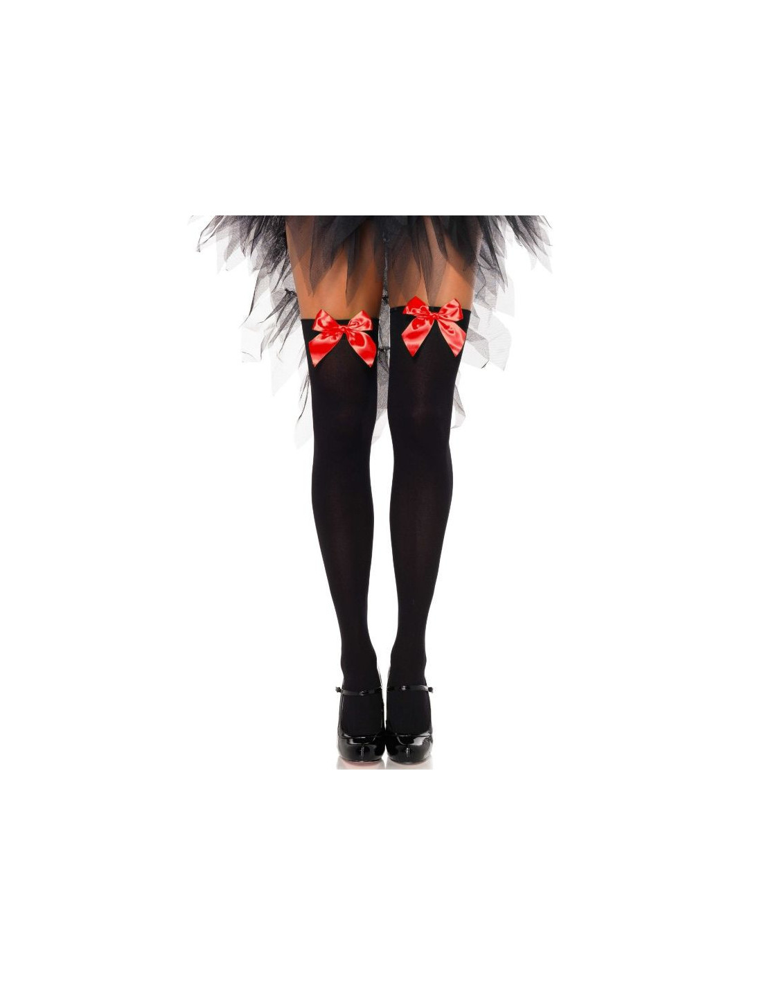 Nylon stockings over the knee with bow manufactured by the prestigious lingerie brand, Leg Avenue. Increase your feminity getting an exclusive piece of seduction sensuality and elegance.
