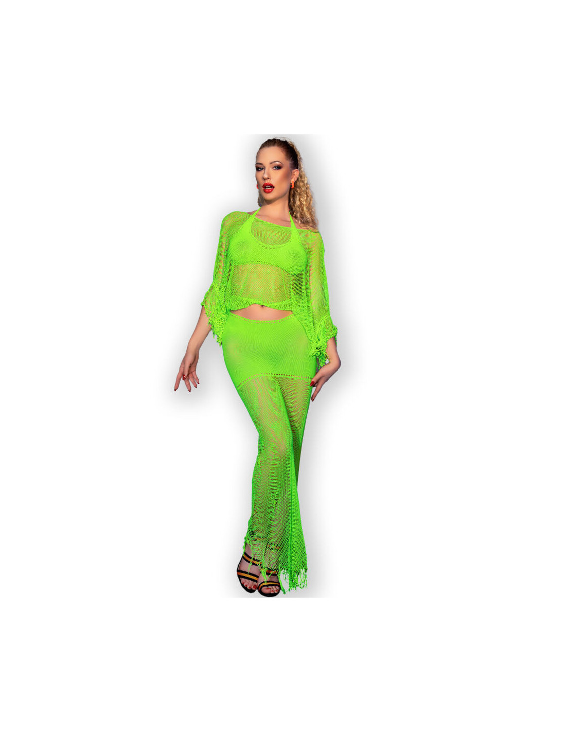 It is a perfect option for those looking to combine style, comfort and sensuality in a single garment. With its beautiful soft-touch material and three well-coordinated pieces, this set is an expression of luxury and sophistication that promises to delight and surprise anytime, anywhere.