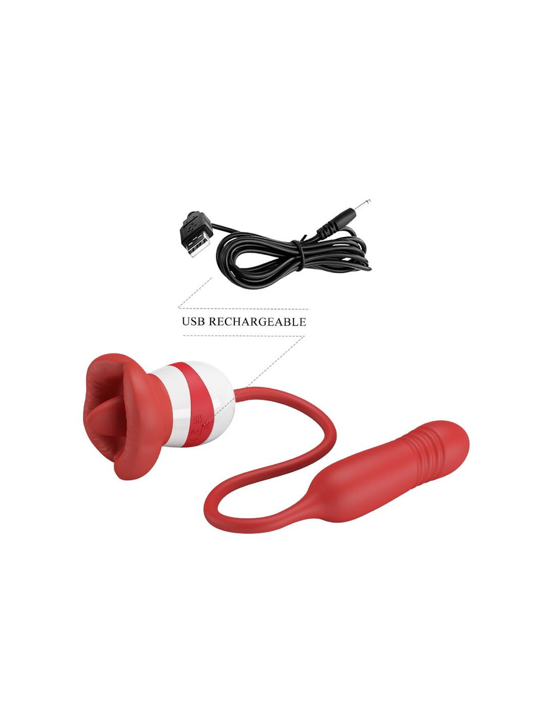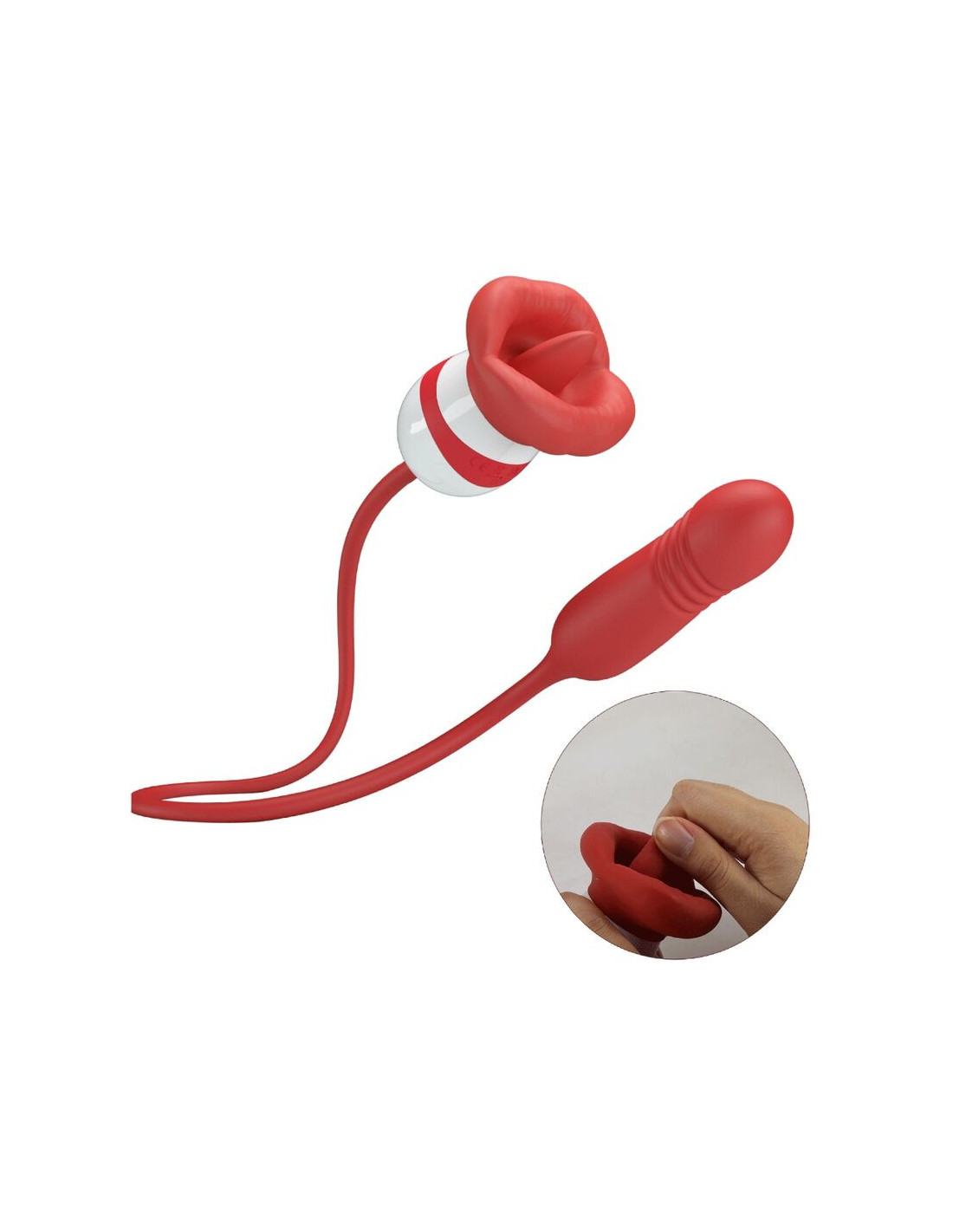 This mouth-shaped vibrator has a unique thrusting bullet and a licking tongue.