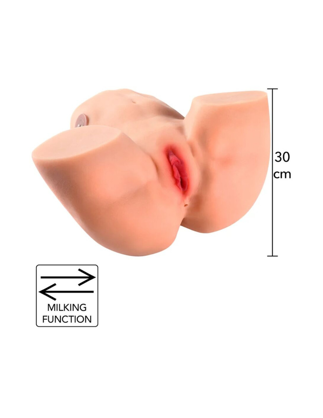 This female masturbator stands out for its compact and powerful design, ideal for those seeking intense and localized stimulation. Equipped with an advanced "milking" function, its internal canal features an intricate texture designed to massage and suck rhythmically. Its structure includes firm, rounded glutes that facilitate grip, allowing you to control every movement and immerse yourself in a superior realism experience.