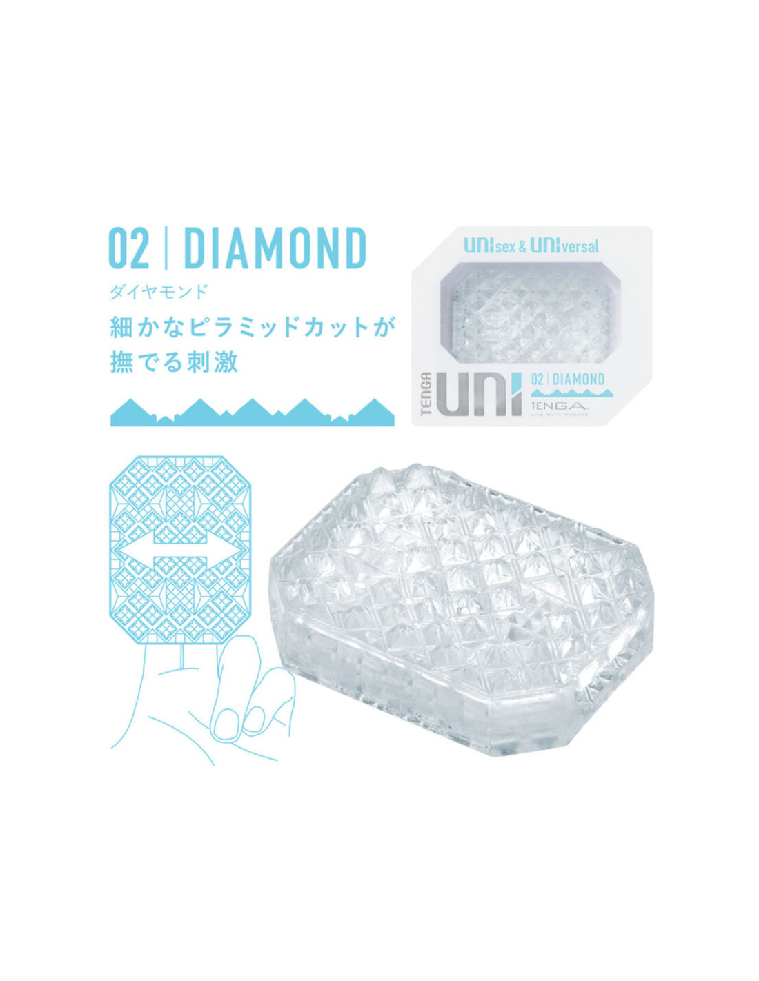- DIAMOND : Fine pyramid cut provides stroking stimulation. Fine evenly arranged pyramid details allow you to enjoy delicate stroking stimulation.