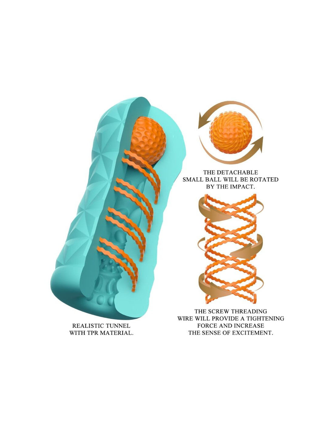Little tool for gigantic masturbation fun! This transparent and reusable masturbator has a rotating spiral and a stimulation ball on the side, the rotating spiral makes the masturbator rotate during penetration and the ball on the top can stimulate the right spot and give you a new sensation. The sheath has a stimulating and exciting texture inside that massages the penis intensely and dynamically during manual work. You can use this stylish skin-friendly masturbator over and over again. Very easy to use and pure pleasure!