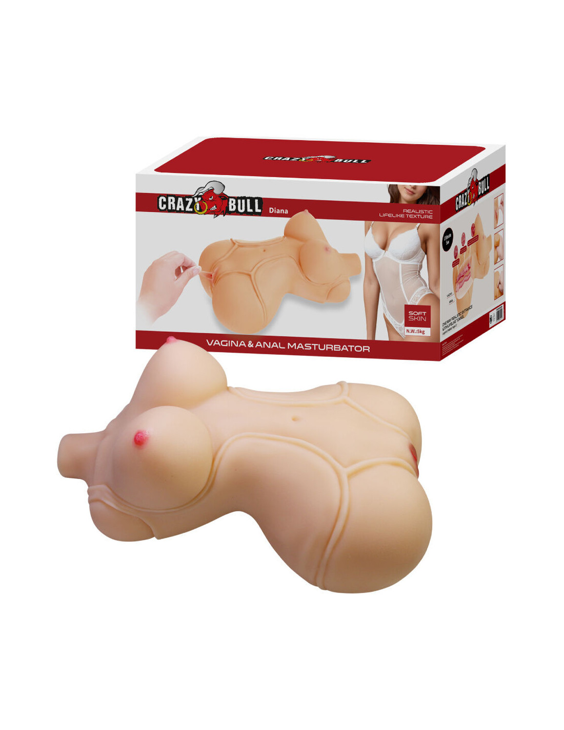 Experience authentic and limitless pleasure with the Diana Realistic Female Masturbator Torso, a masturbator designed for those seeking intense sensations and unparalleled realism. Weighing 5 kg, this torso offers the stability and firmness needed to enjoy more natural and immersive solo encounters.
