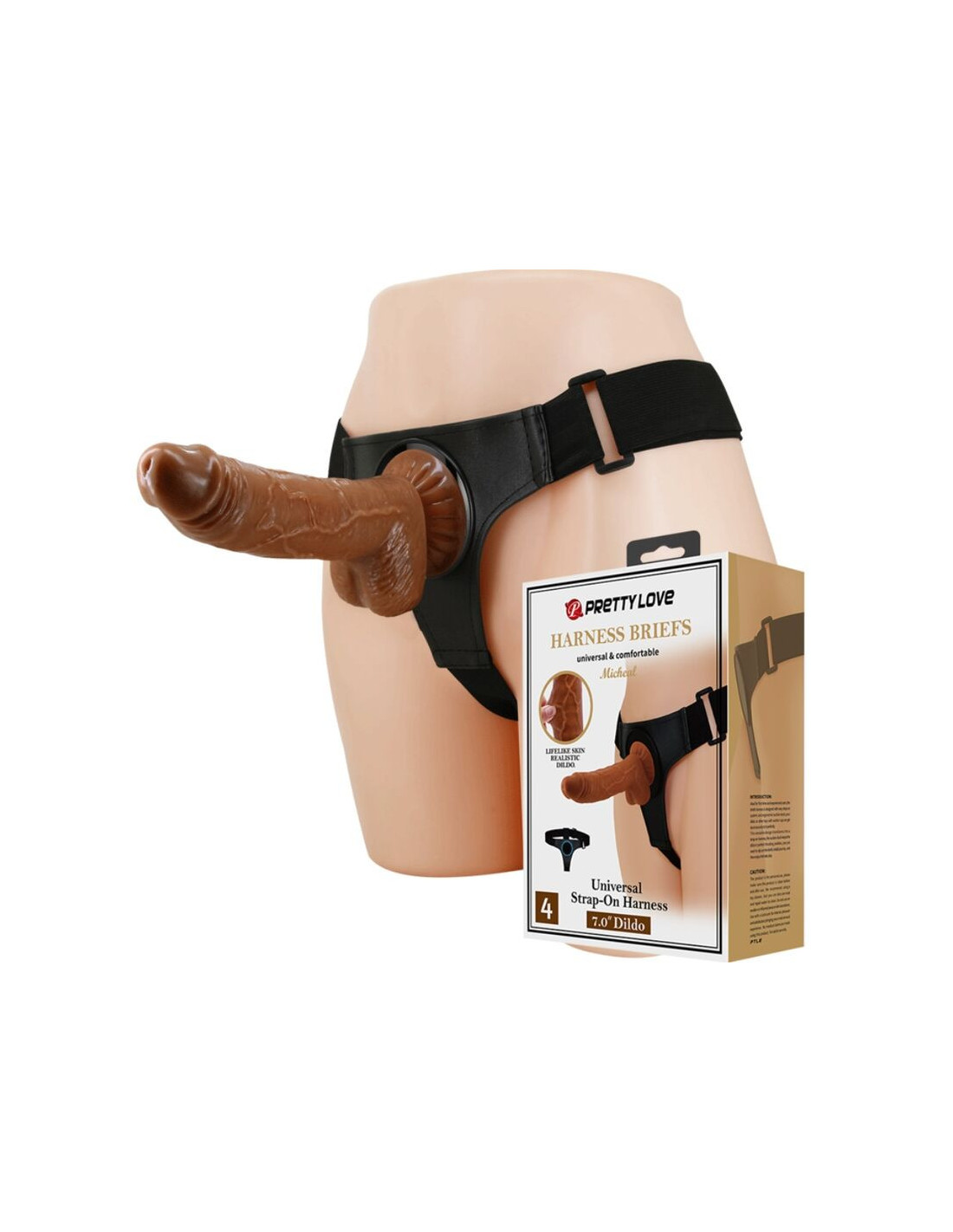 PRETTY LOVE - HARNESS BRIEFS UNIVERSAL HARNESS WITH DILDO MICHEAL 20 CM BLACK