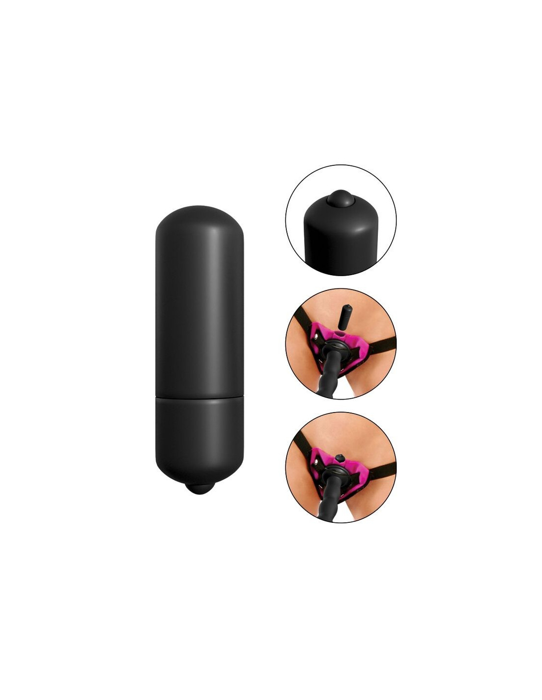 Give and receive pleasure with this Vibrating Strap-On Set! With a pocket for a wireless multi-speed bullet discreetly hidden against your sweet spot, this strap-on provides pleasure for you both. Your partner will love the sensual feel of the firm phthalate-free dildo you'll love the secret buzz delivered from the micro massager. The durable 4-way nylon straps easily adjust to fit almost any size, while the velvet-lined harness comfortably stays in place when the action heats up. Harness includes 3 interchangeable O-Rings to hold dildos of varying dimensions.
