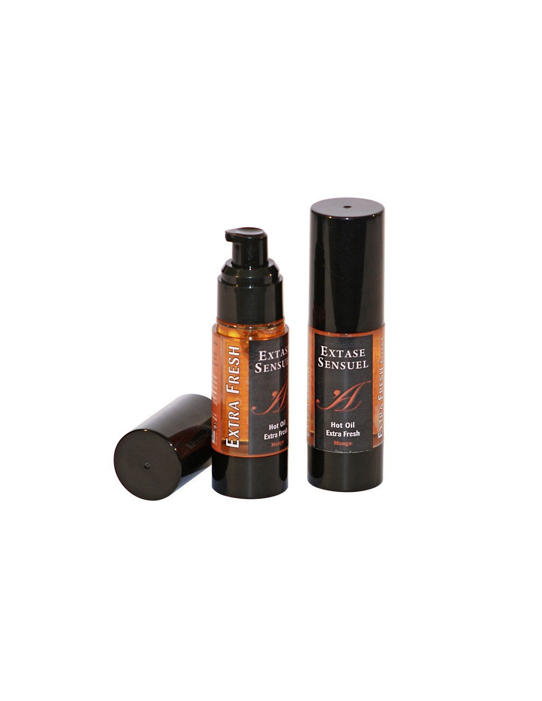 The extra fresh oils are specially designed to enhance sensations to high limits. The extra fresh oil has a double hot-cold effect, penetrating quickly, nourishing the skin and avoiding leaving traces without staining.