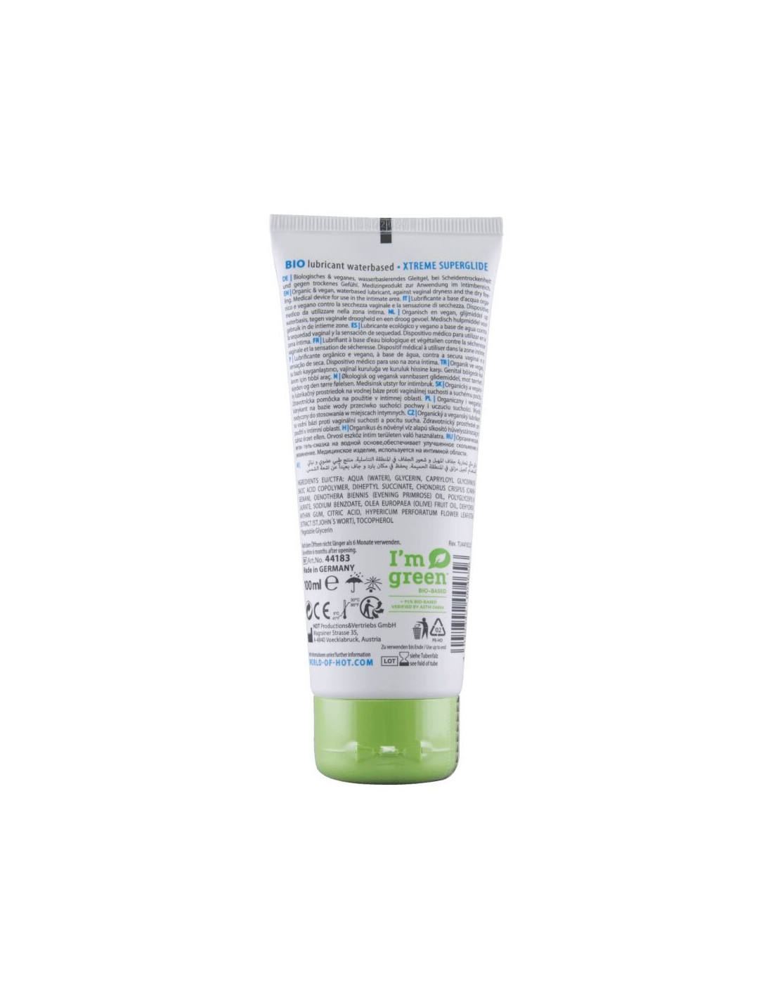 As a medical-grade product for intimate use, it is particularly gentle on the skin and crafted from natural ingredients. The eco-friendly Eco-Tube is made from renewable resources, highlighting a commitment to sustainability and environmental protection.