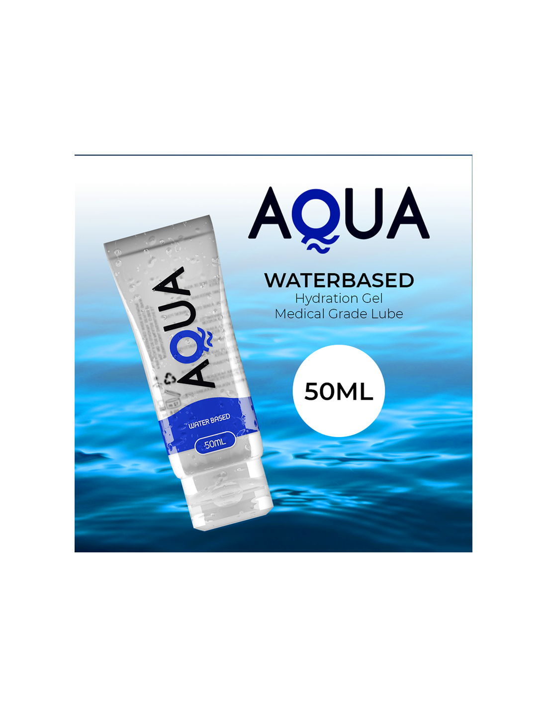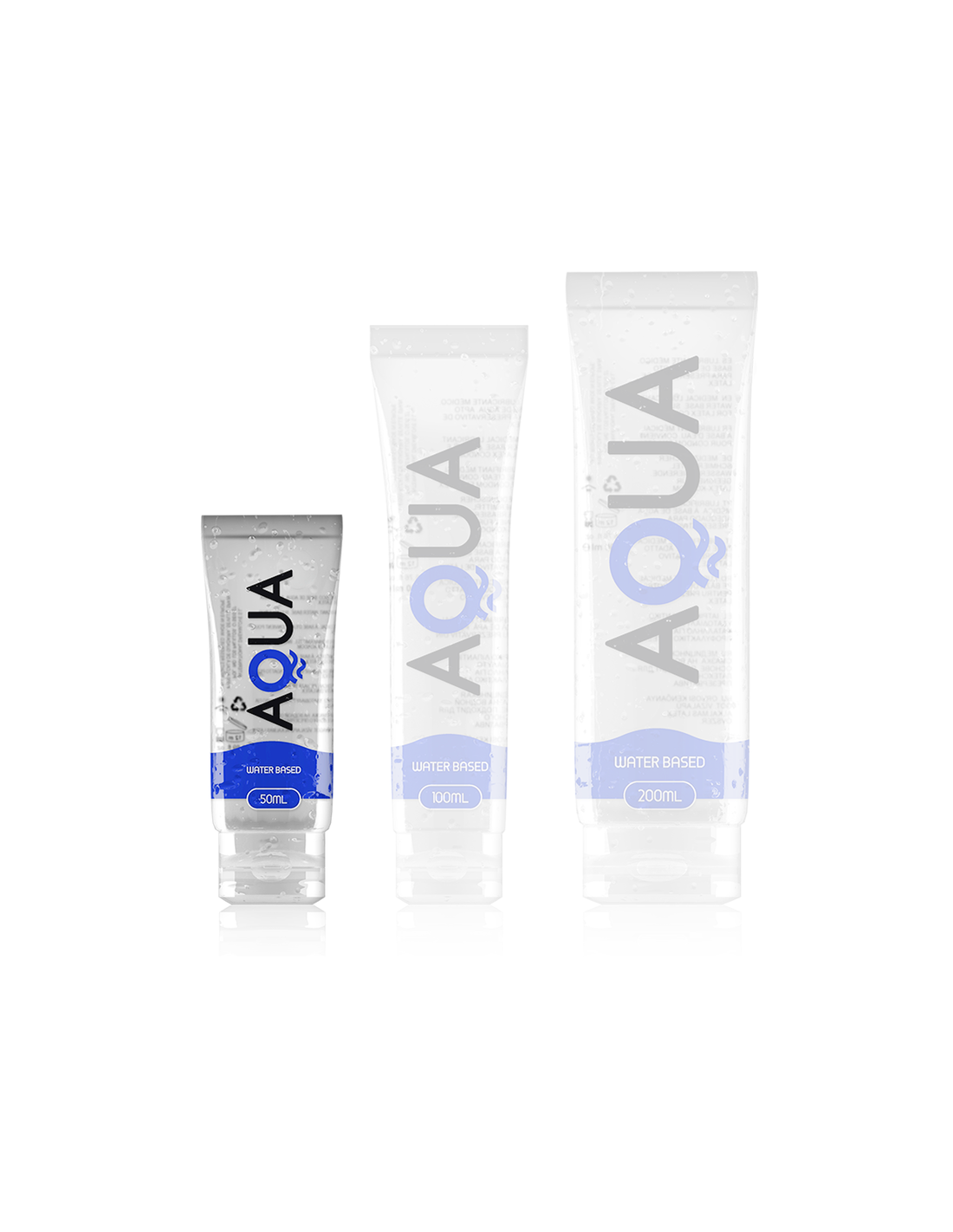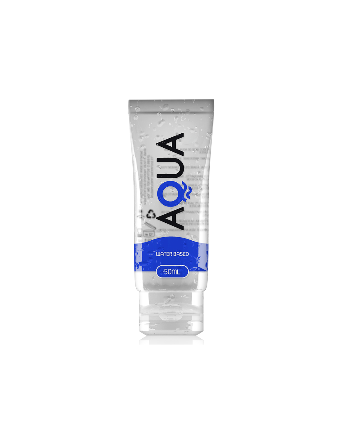 - AQUA ® is also great for use with condoms or just skin-to-skin. Unlike many other water-based lubricants, AQUA ® does not leave a residue. Also, its transparent bottle looks great on your nightstand.