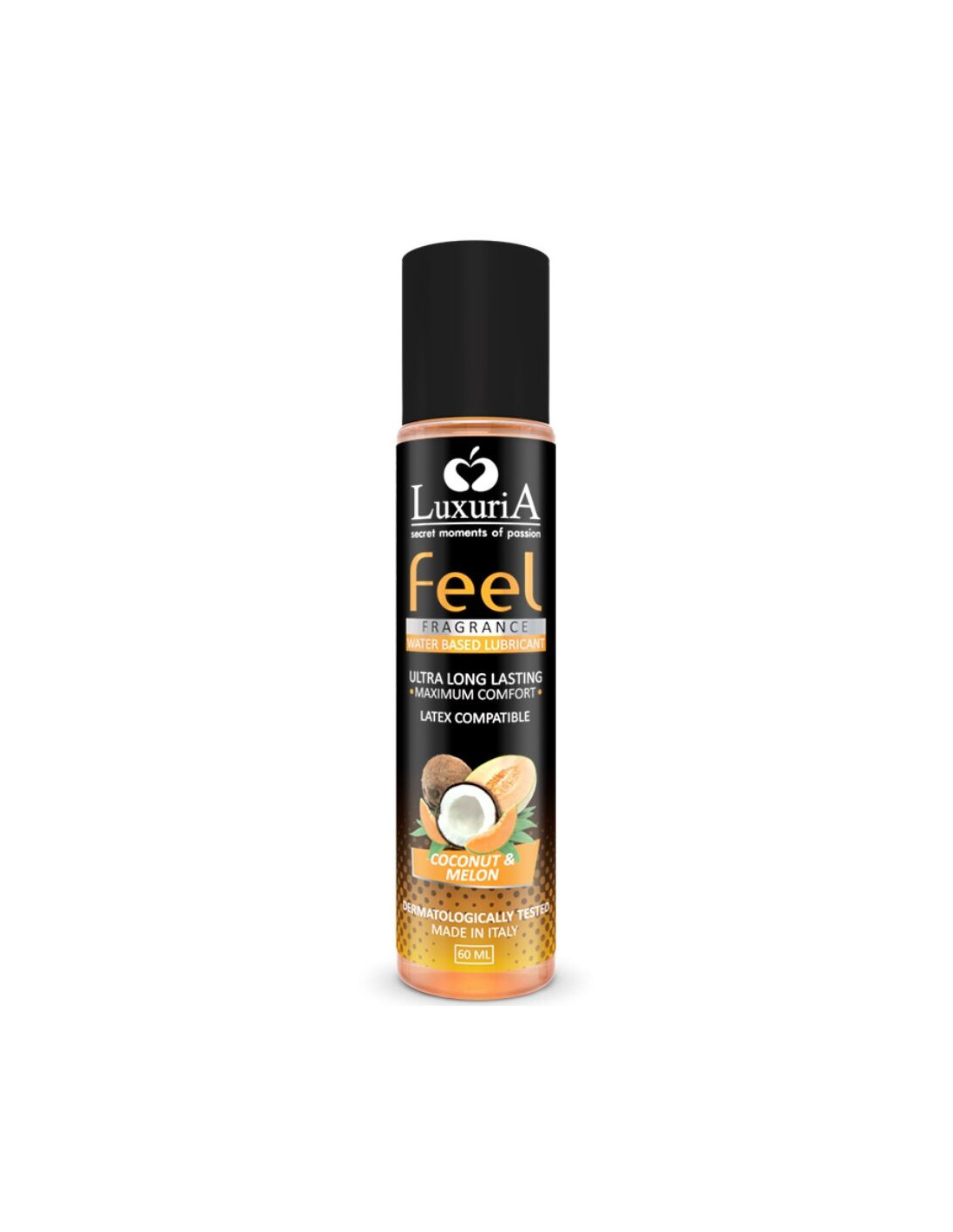 INTIMATELINE LUXURIALuxuria Feel Fragrance Coconut & Melon is a water-based intimate lubricant specifically formulated for vaginal or anal moisturization of lubrication before intercourse. In order to guarantee the excellent lubricating properties of our products, we do not use food flavourings in the production process as these often have a negative effect on the fluidity of the end products. We preferred to use natural fragrances.